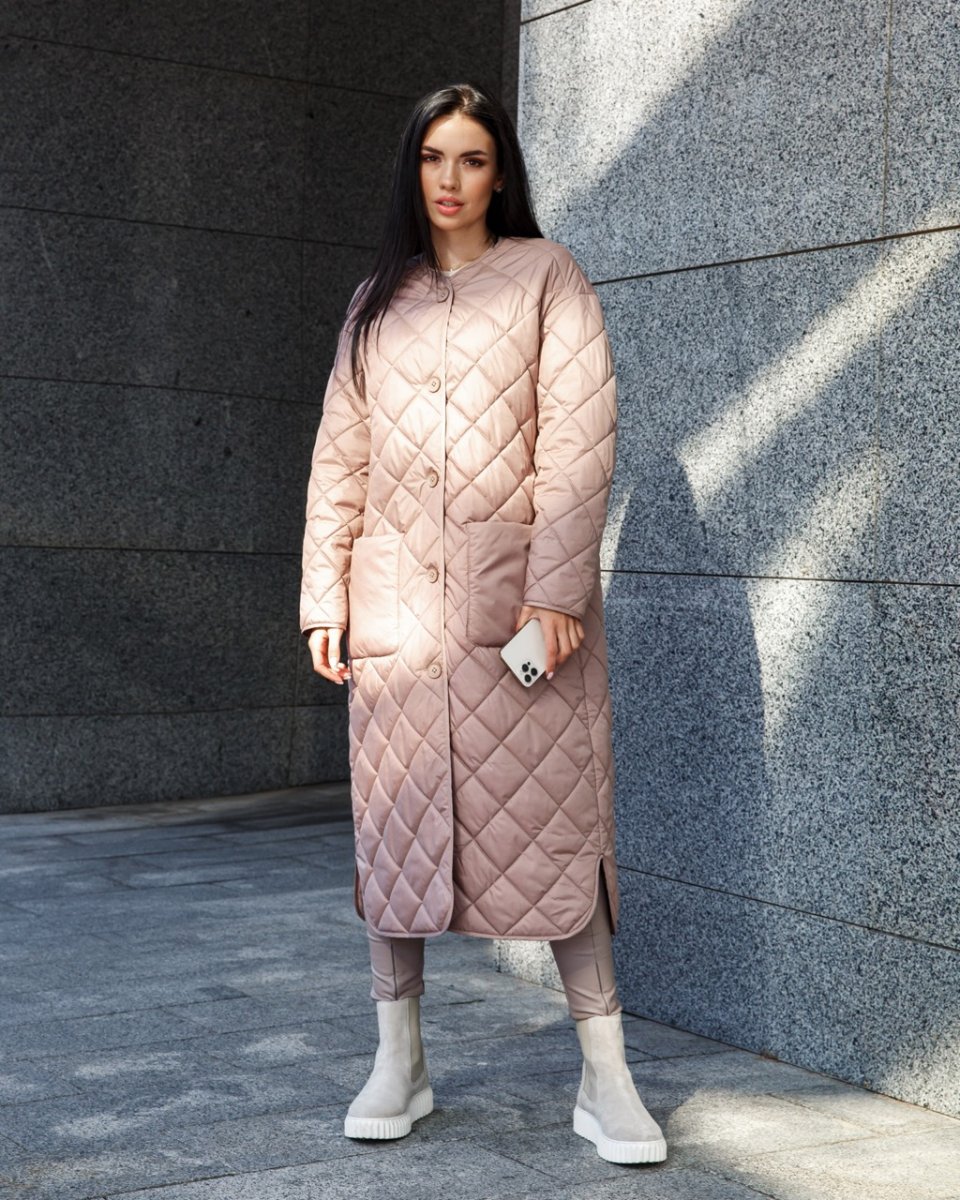 Це стильне стегане пальто з плащевої тканини і мікро пуху - ідеальне рішення для холодних днів. Воно забезпечує відмінну теплоізоляцію і захист від вітру. Крім того, це пальто виглядає дуже модно і елегантно.