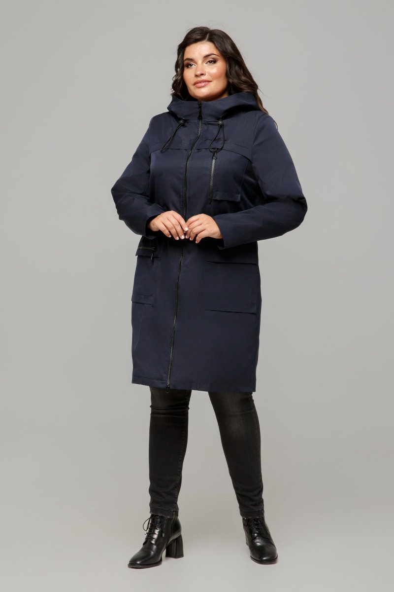 По полці виконані кокетки, по спинці- відлітна кокетка. По лінії талії- куліса. Виріб доповнений накладними кишенями з клапаном та зліва вгорі по полці- кишеня на блискавку.