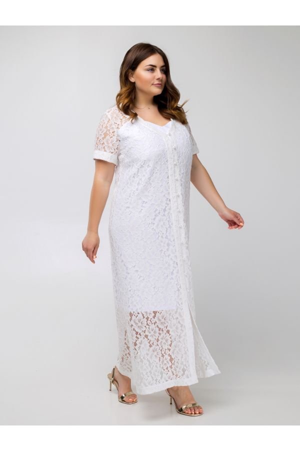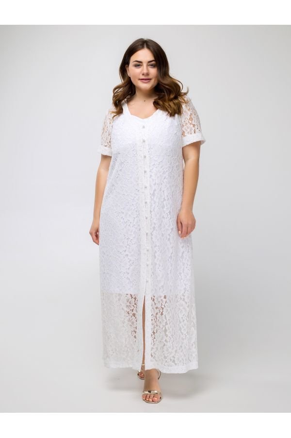 Верхнє плаття довжини максі з красивого гіпюру, застібається на декоративні ґудзики.