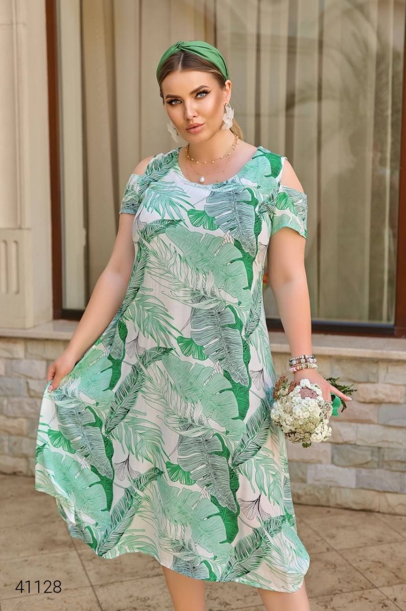 Сукня плюс сайз міді з вирізами на плечах 41128 зелений