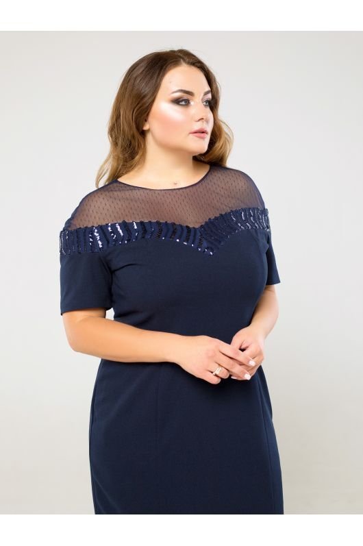 Сукню Одрі створен для особливих випадків. Воно добре сідає по фігурі, приховуючи дрібні недоліки. Прикрашає виріб сітка в горошок і паєтки в тон сукні. Застібається на декоративну ґудзик і потаємну блискавку по центру спинки.
