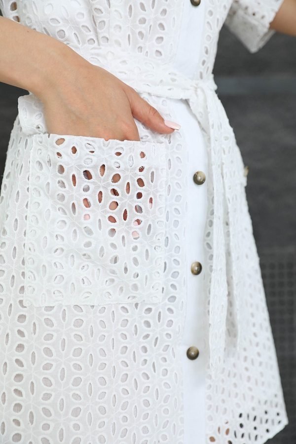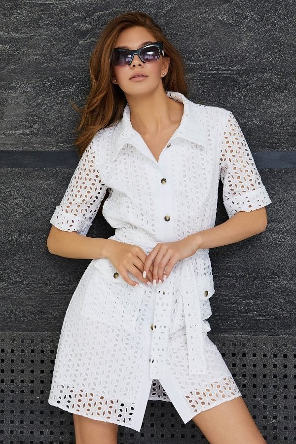 Літнє плаття міні з прошви прекрасно можна одягати на кожен день. Сукня "Рісса" стане просто порятунком в жарку погоду, завдяки чому можна буде насолоджуватися практичністю і зручністю вбрання. Це ідеальне рішення для побачення, або походу в літнє кафе. Напівприлеглий силует сукні додає образу кокетливості і грайливості.