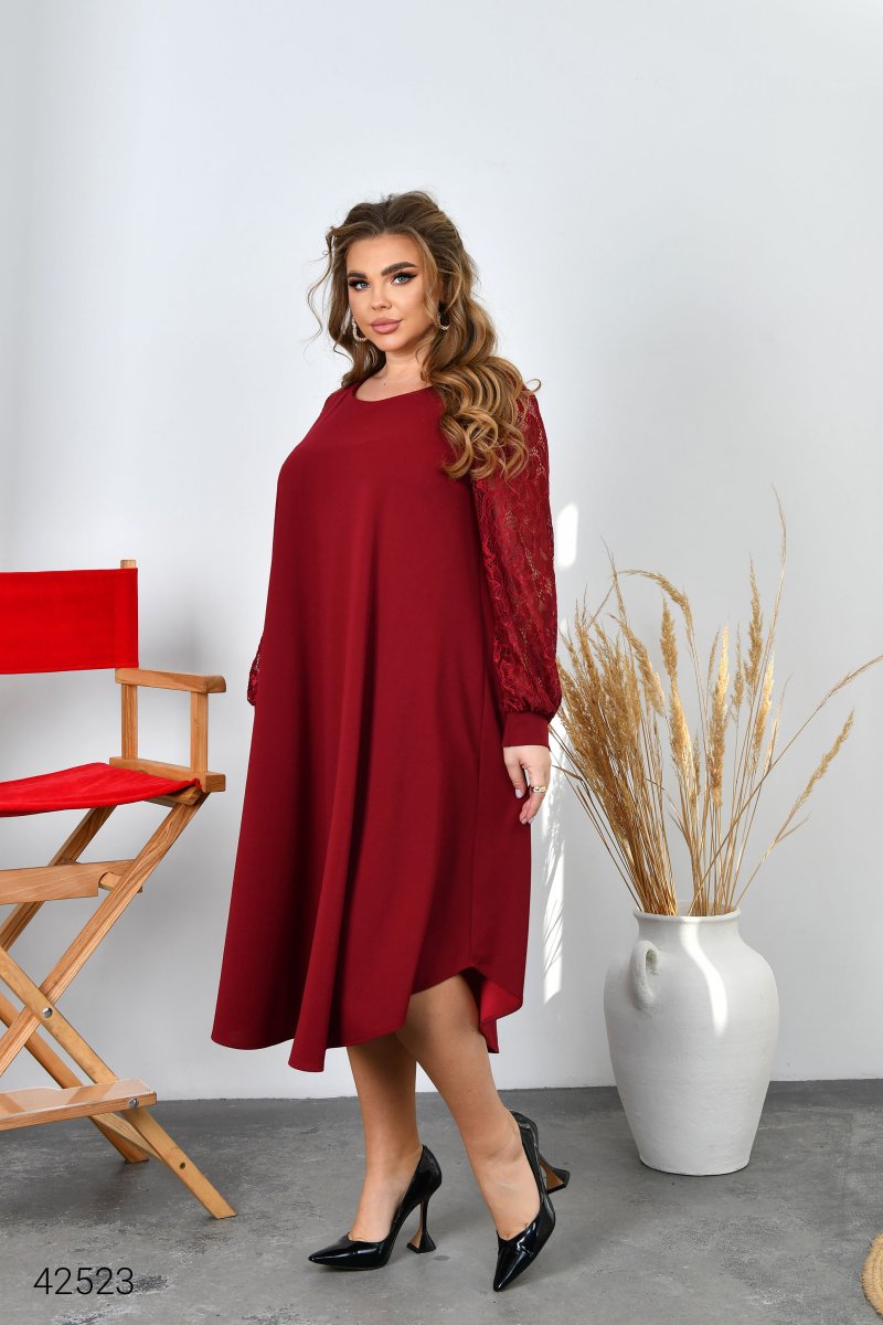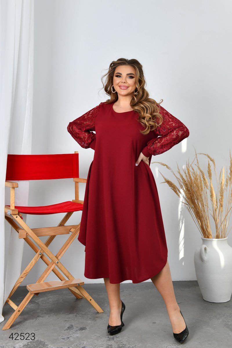 Сукня батал з рукавами з гіпюру 42523 червоний
