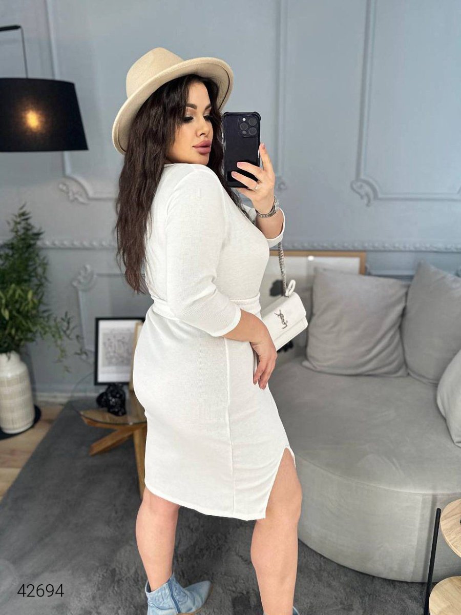 Сукня у рубчик великих розмірів. Пояс у комплекті.