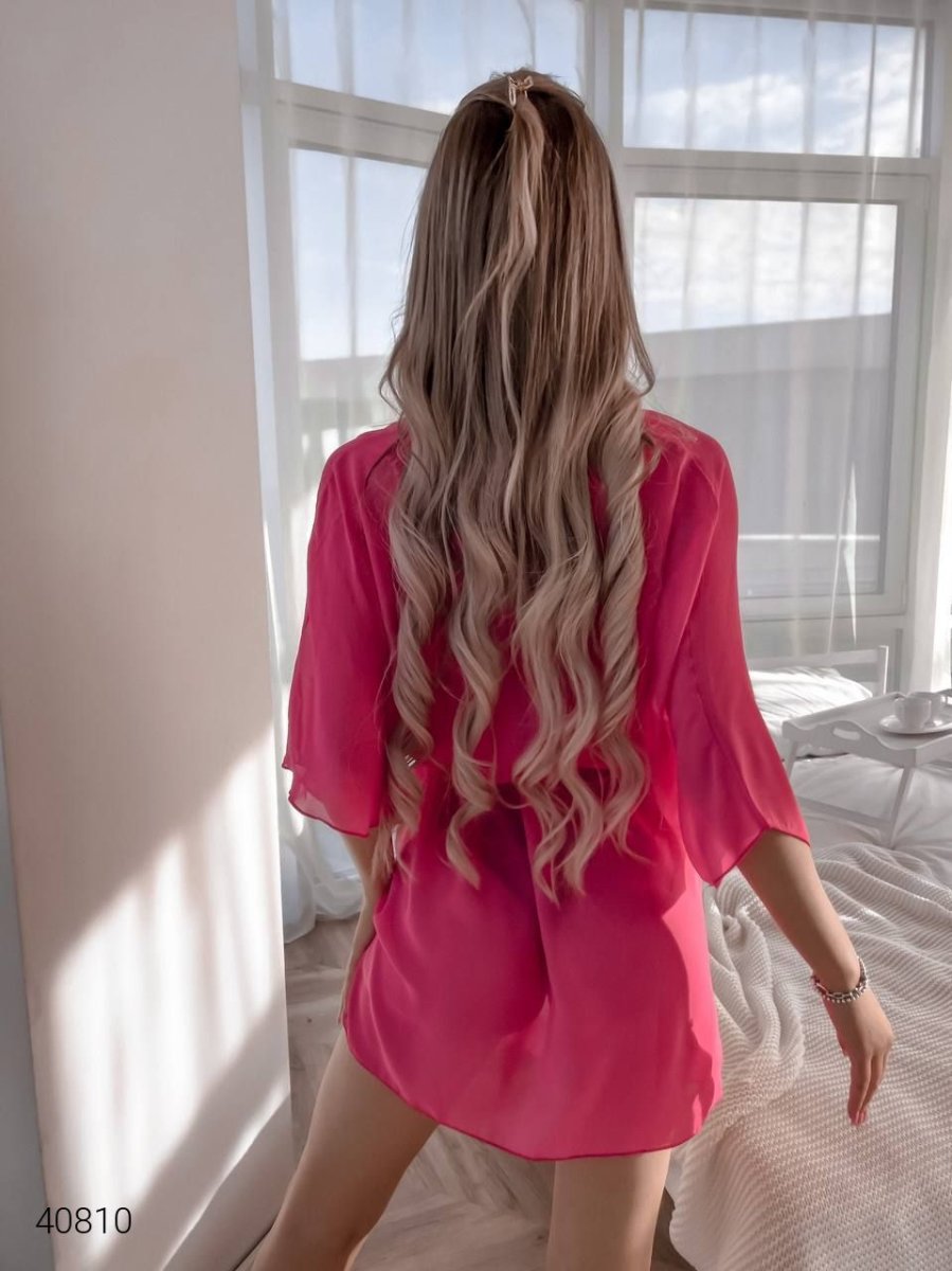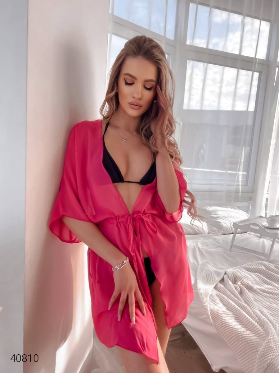 Туніка пляжна коротка. Пояс затяжка. Розміри: (1) 42-46 (с-м-л); (2) 48-50 (хл-ххл). Довжина 85 см. Відтінок може змінюватись!