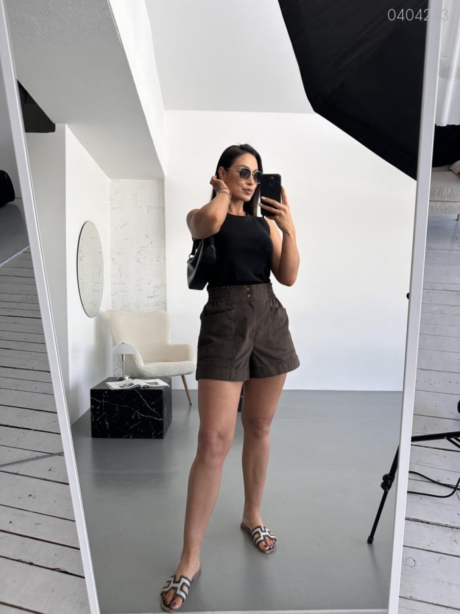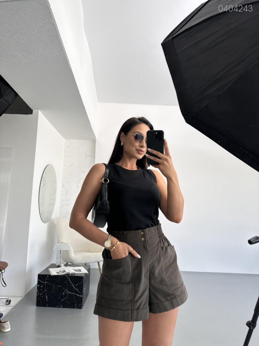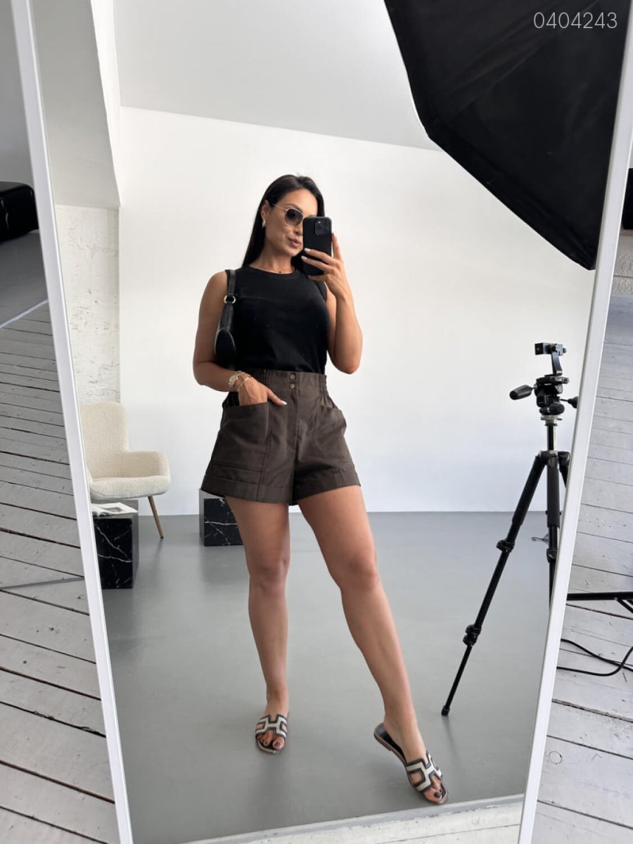 Деталі: висока посадка, широкий пояс на резинці, глибокі кишені, застібка - блискавка та кнопки.