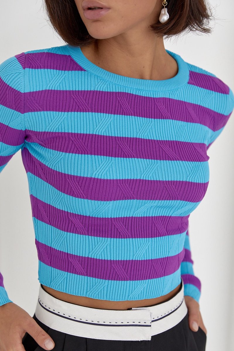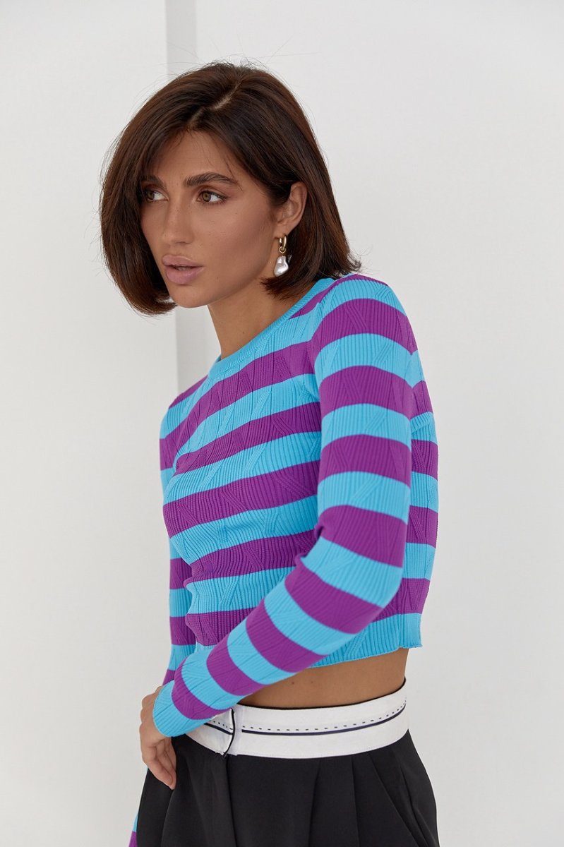 Приталений джемпер у яскраву смужку - 92161 фіолетовий