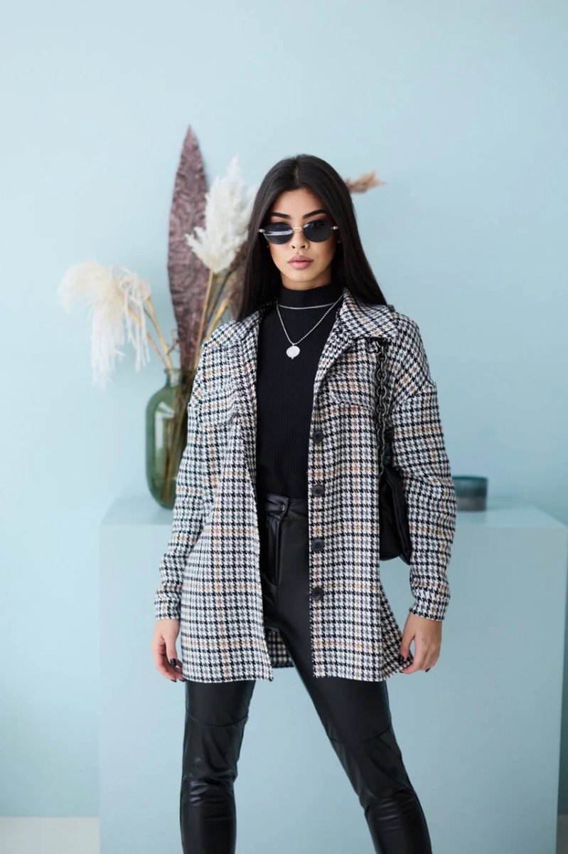 Ідеальним доповненням будь-якого образу буде сорочка. Принт клітина, як і раніше, в ТОПі. Фасон вільний, прямий. Рукав довгий, приспущений.