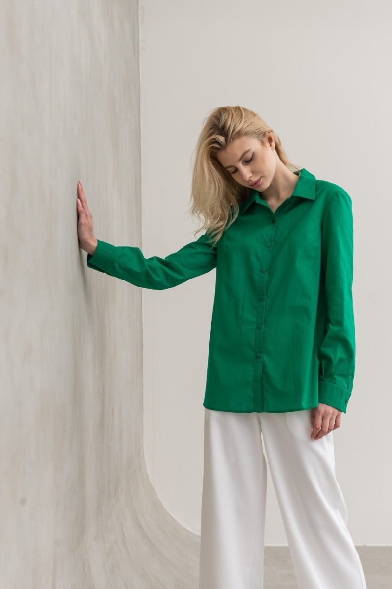 Сорочка з бавовняної тканини зеленого кольору Сальма 21294