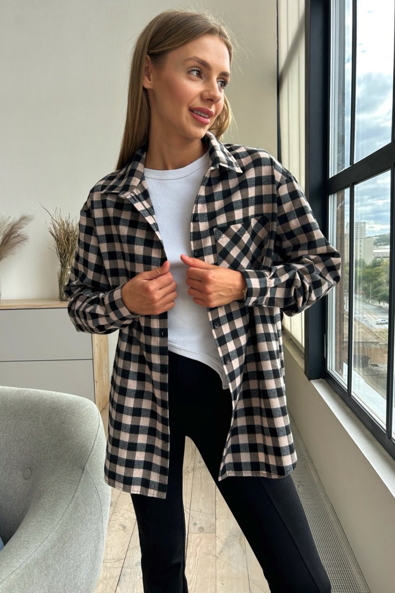 Ця стильна сорочка в клітинку з фасоном оверсайз стане стильним доповненням до гардеробу.. Вона ідеально підійде для створення непримиренного образу