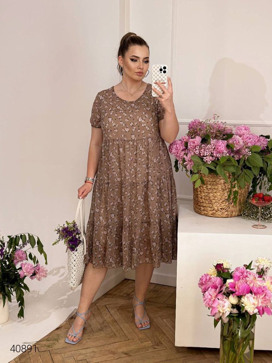 Шифонова сукня великих розмірів. Рукави на резинці.