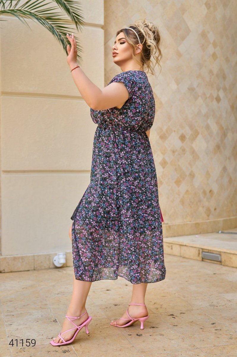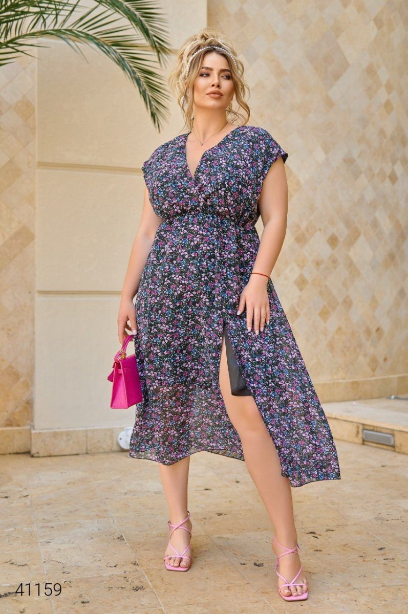 Шифонова сукня великих розмірів. Талію на гумці. Тканина: шифон із підкладом.