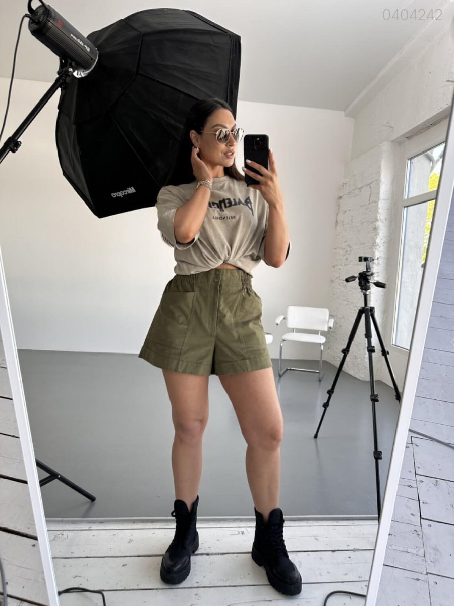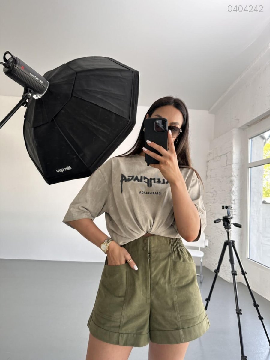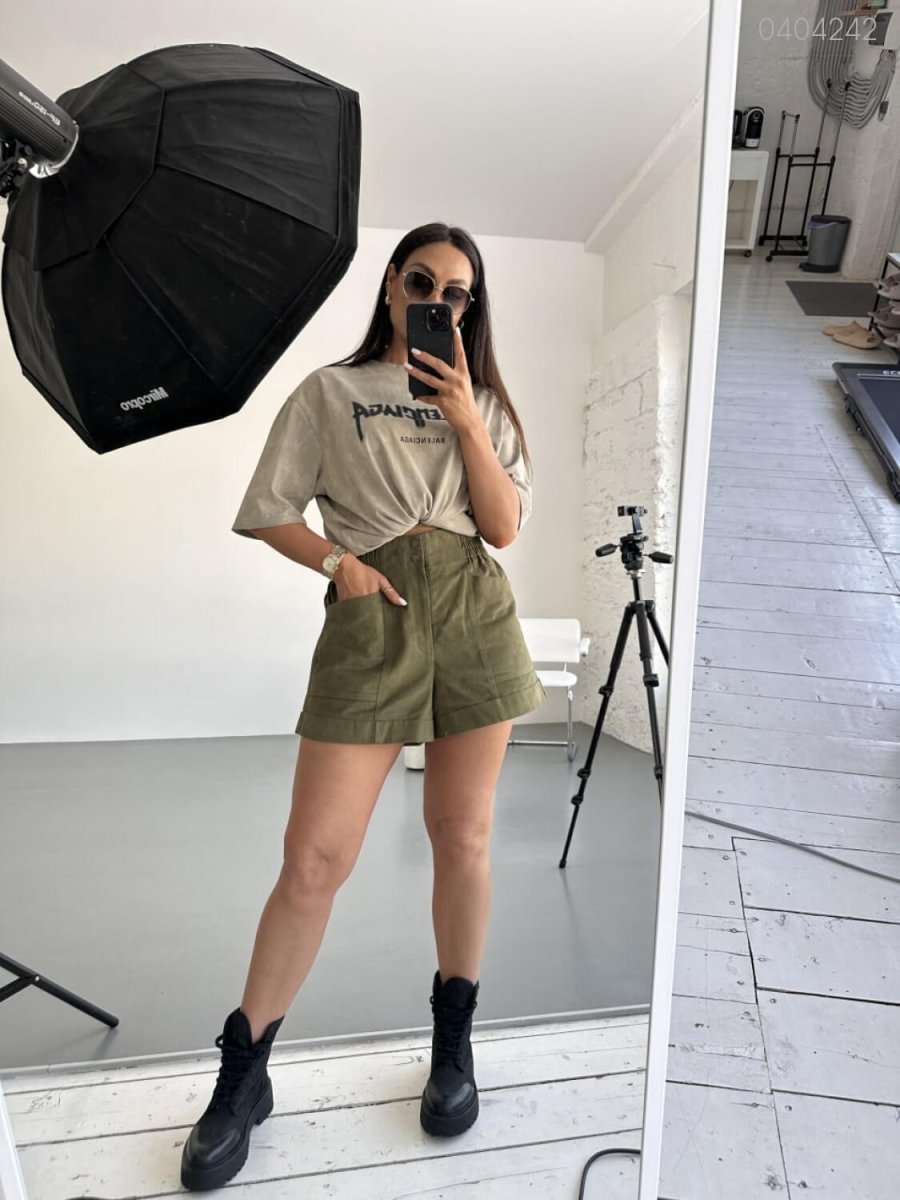 Деталі: висока посадка, широкий пояс на резинці, глибокі кишені, застібка - блискавка та кнопки.