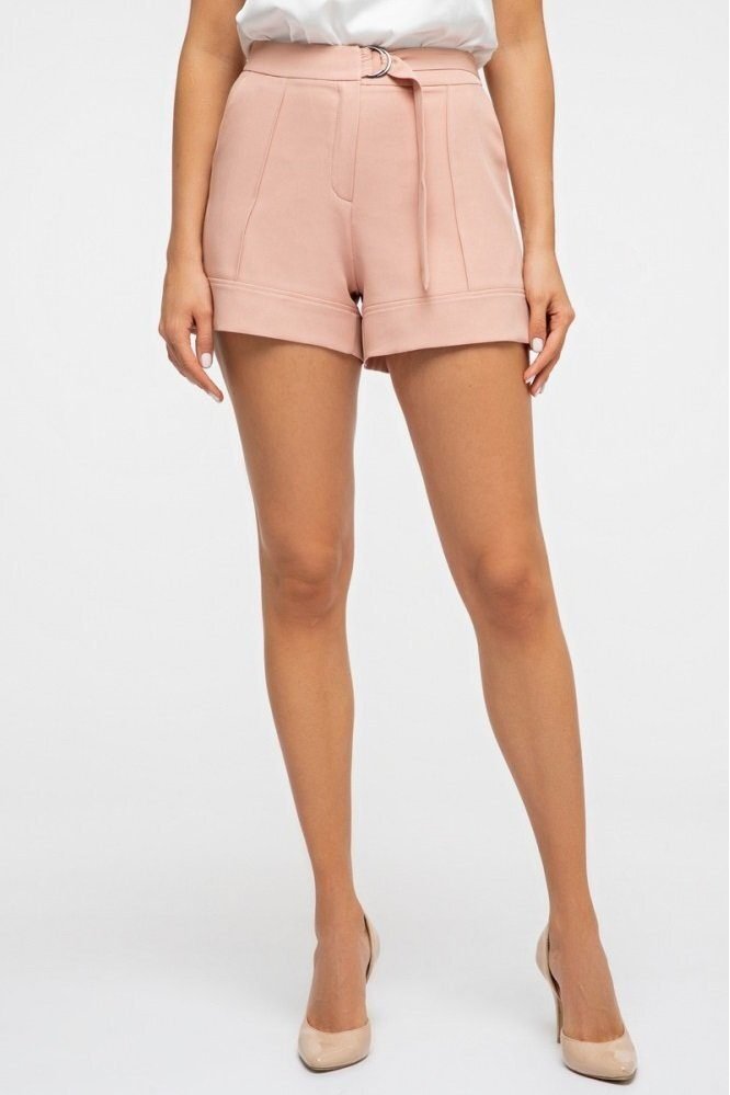 Стильні шорти з костюмної тканини з накладними кишенями. Застібаються спереду на блискавку і затягуються поясом.