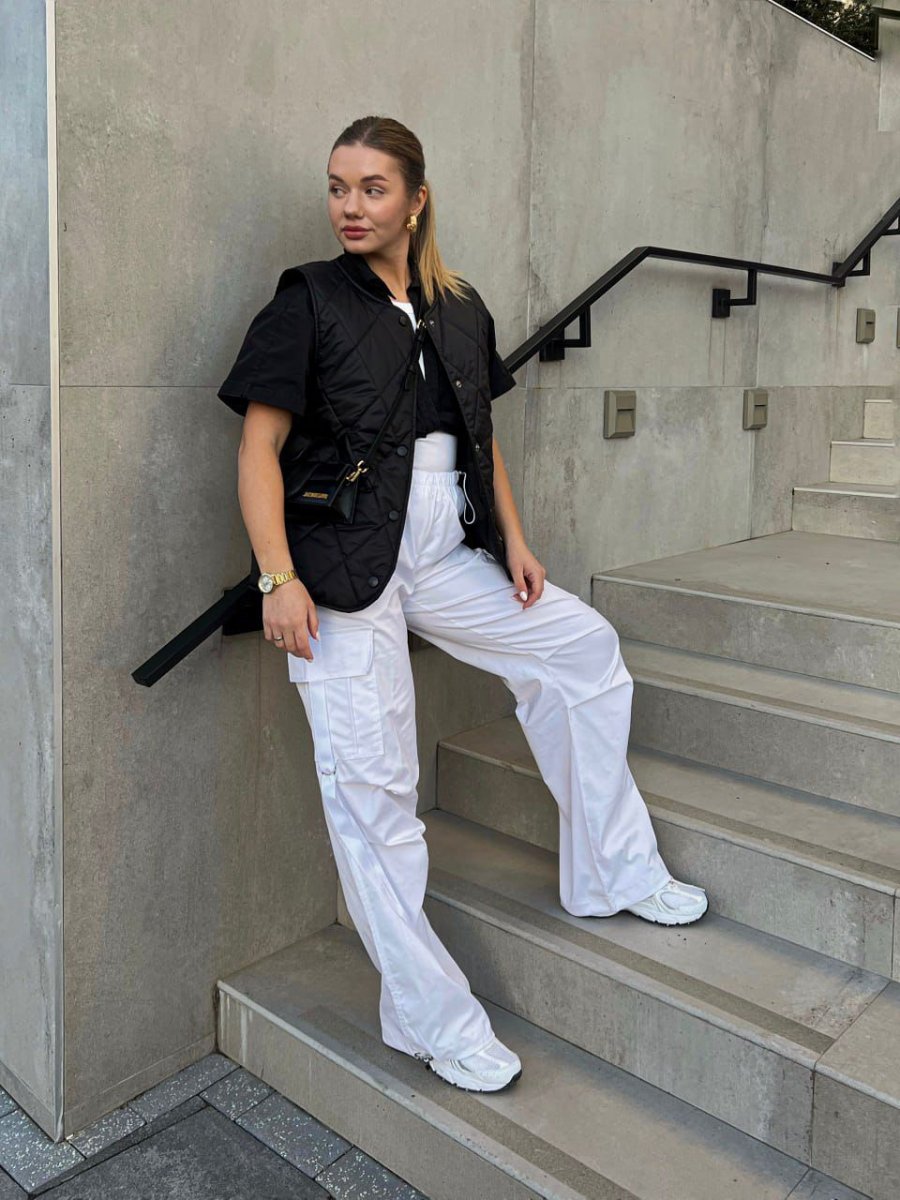 Штани карго жіночі. Тканина: котон меморі. Штани мають гумку на стопорах, яку можна затягнути.
