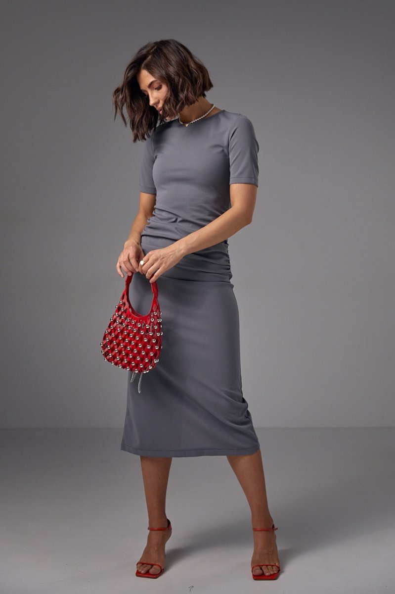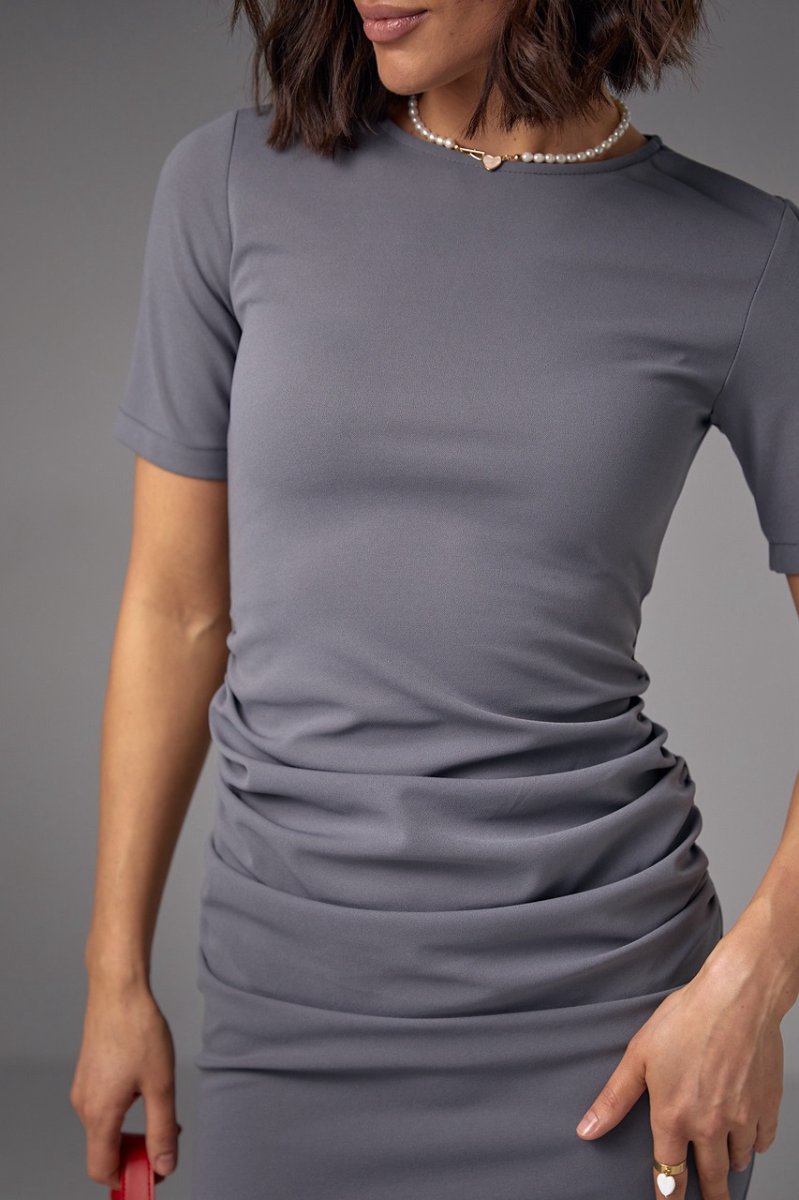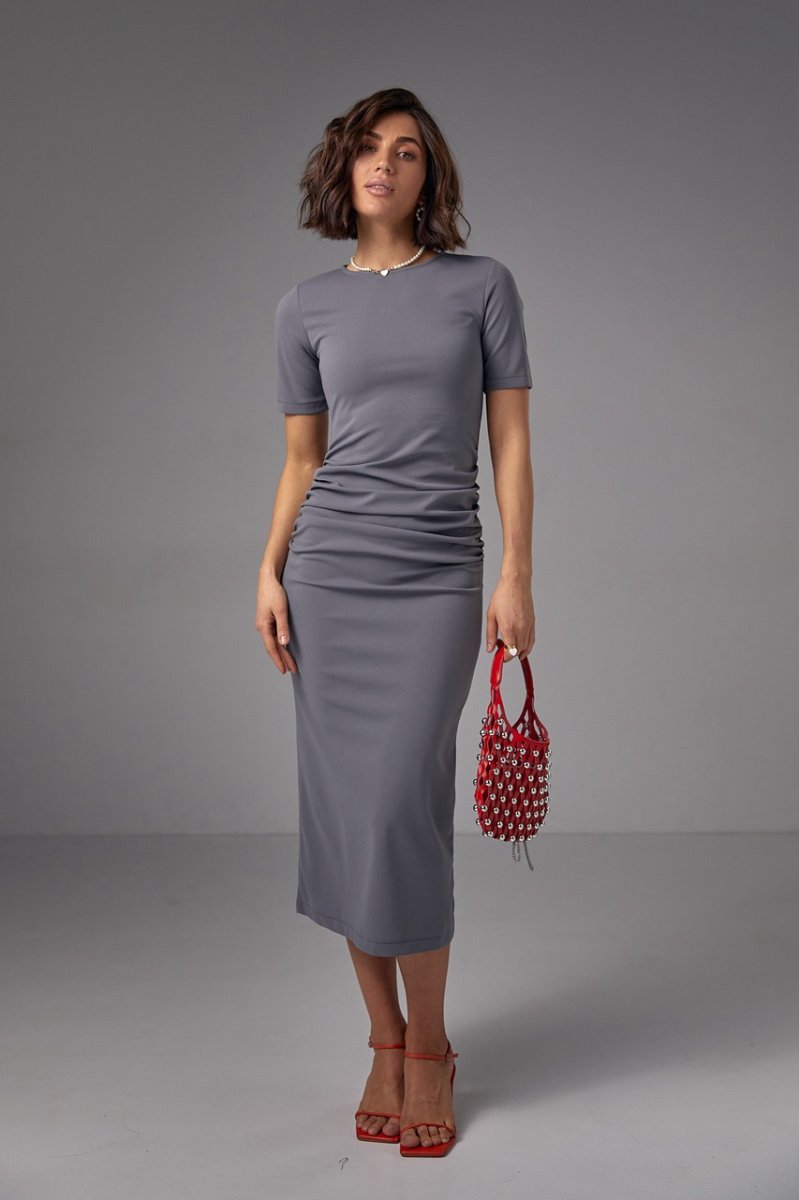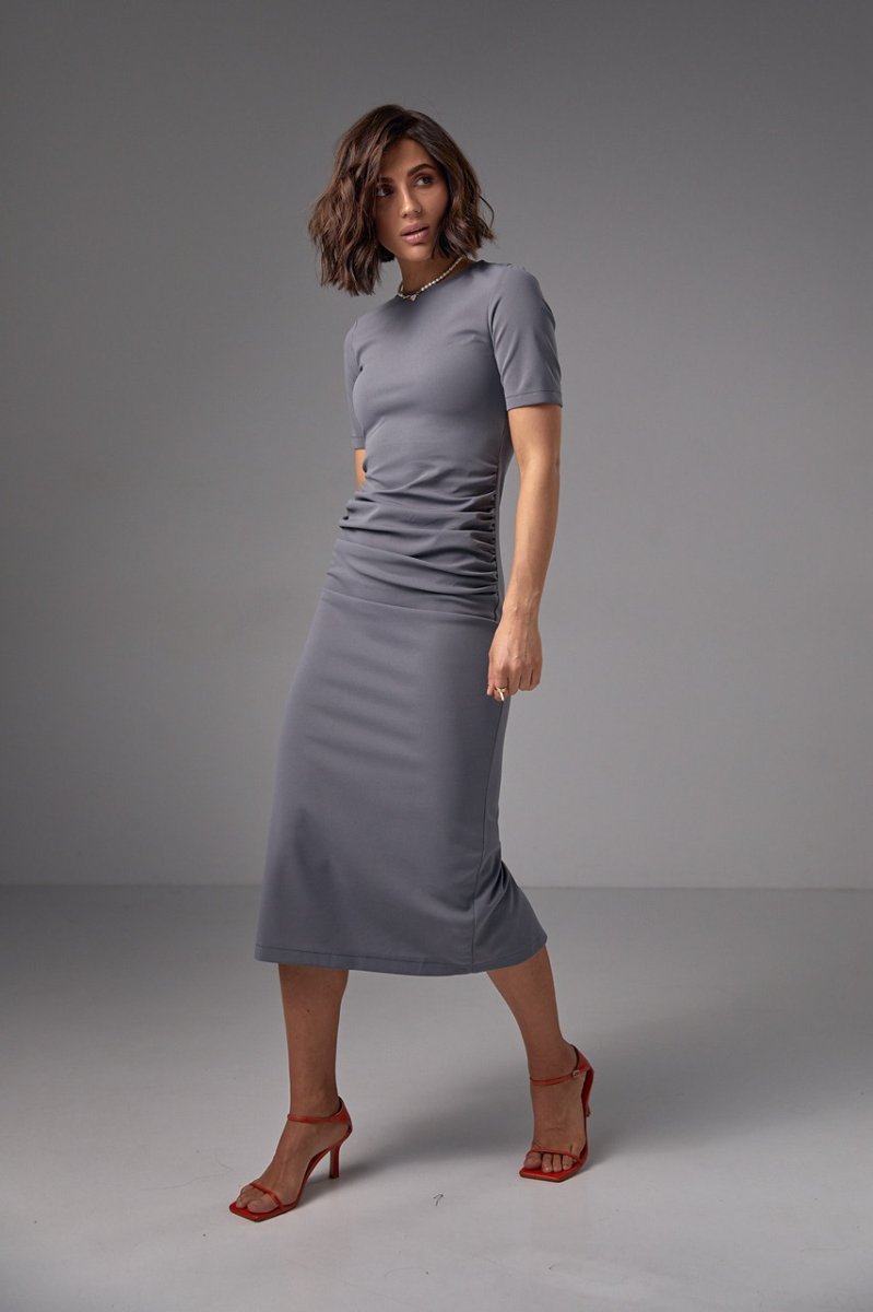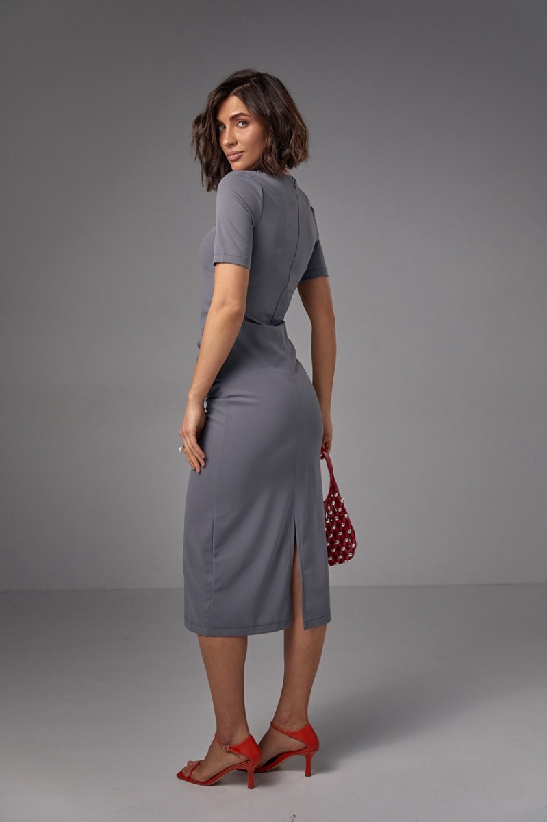 Силуетна сукня міді з драпіруванням - 2695 сірий
