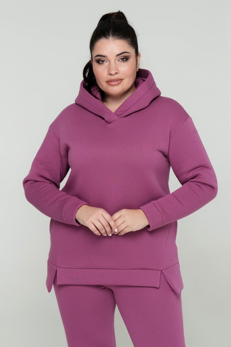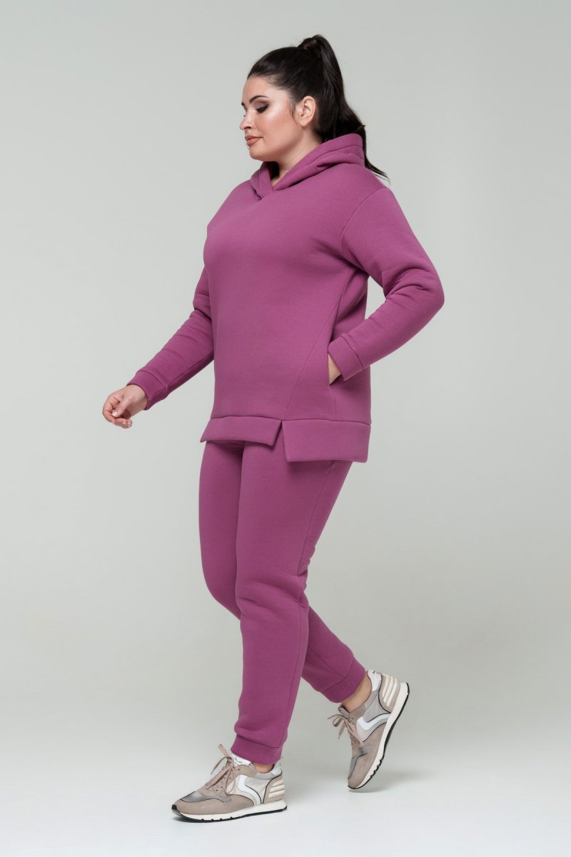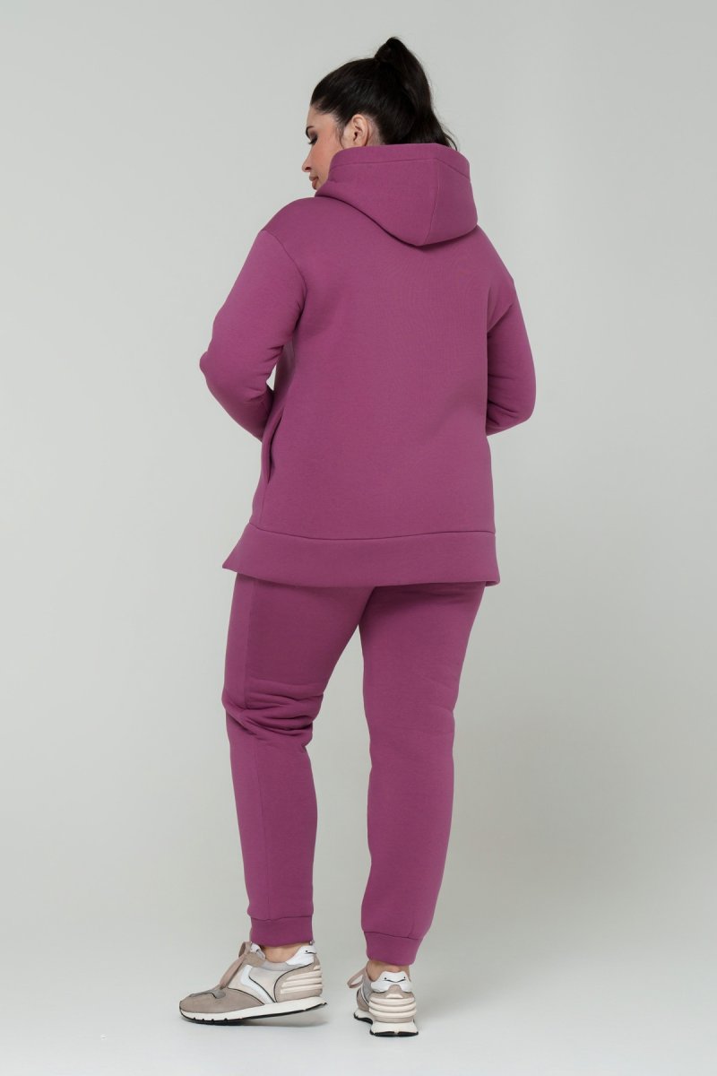 Джемпер прямого силуету з капюшоном. Рукав втачний на спущеній проймі. Низ джемпера з притачною планкою та розрізами. У бокових швах кишені. Штани з високою посадкою на еластичному поясі, попереду кишені, по низу - відрізний манжет.