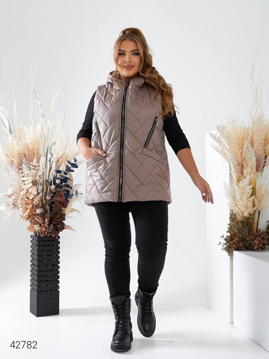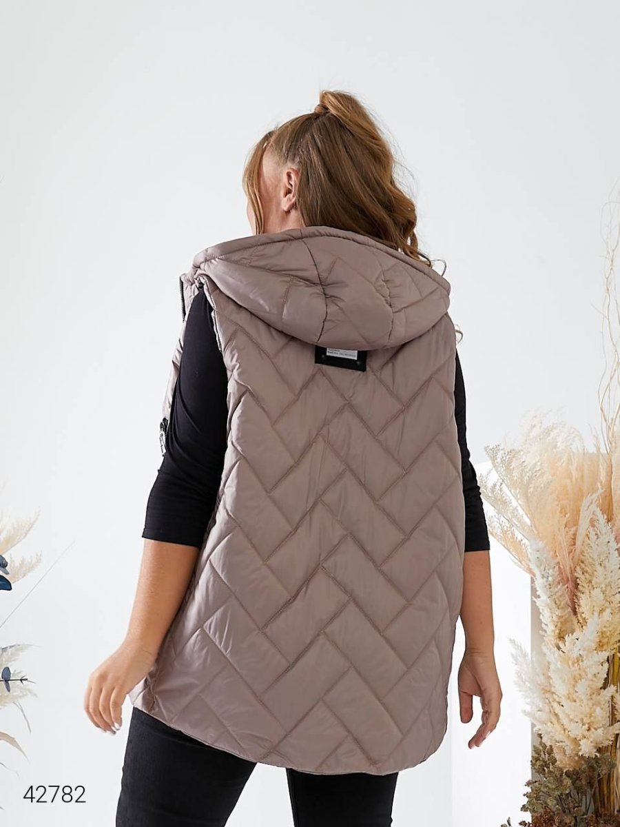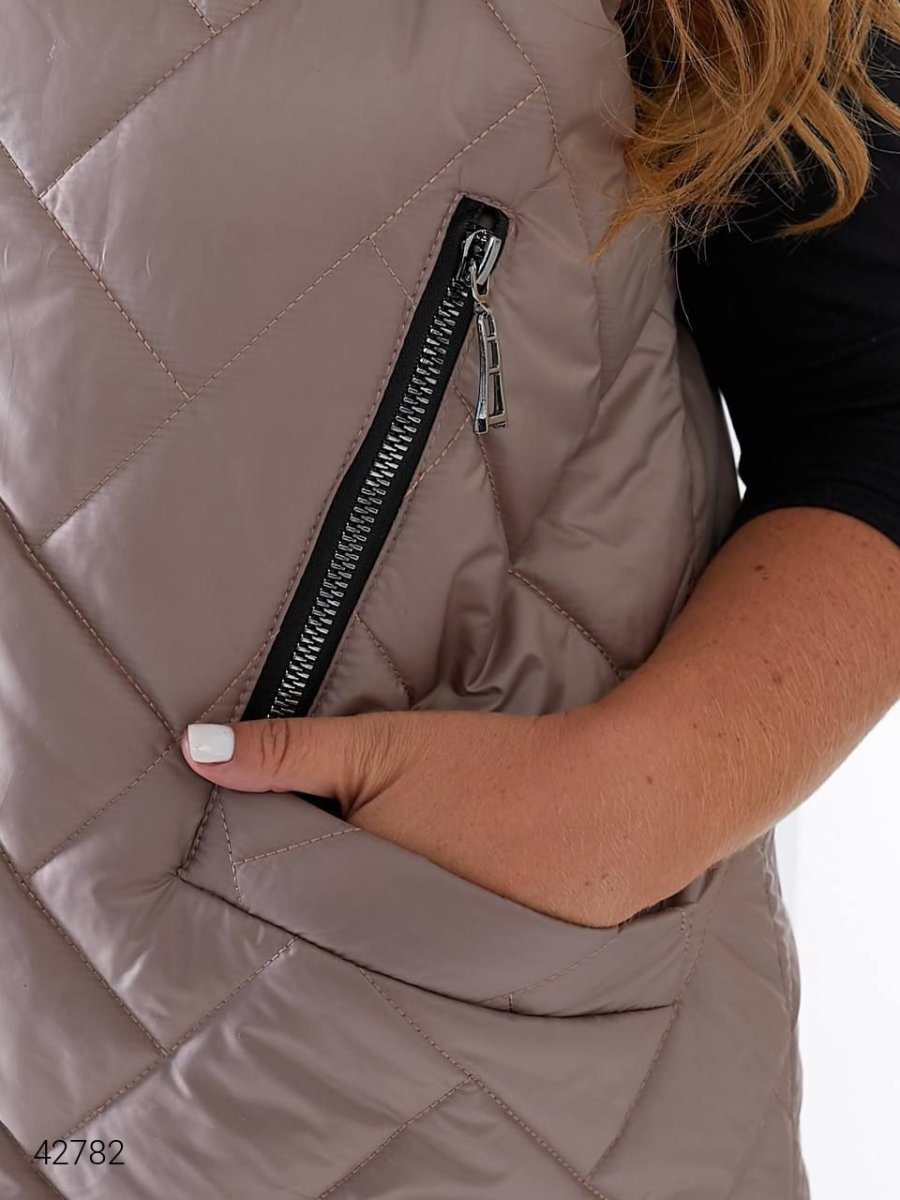 Стьобана жилетка жіноча. Стильна стьобана жилетка з кишенями, зручним глибоким капюшоном та якісною фурнітурою.