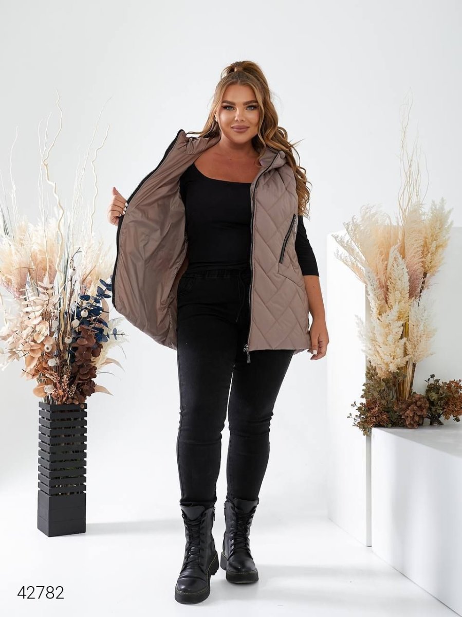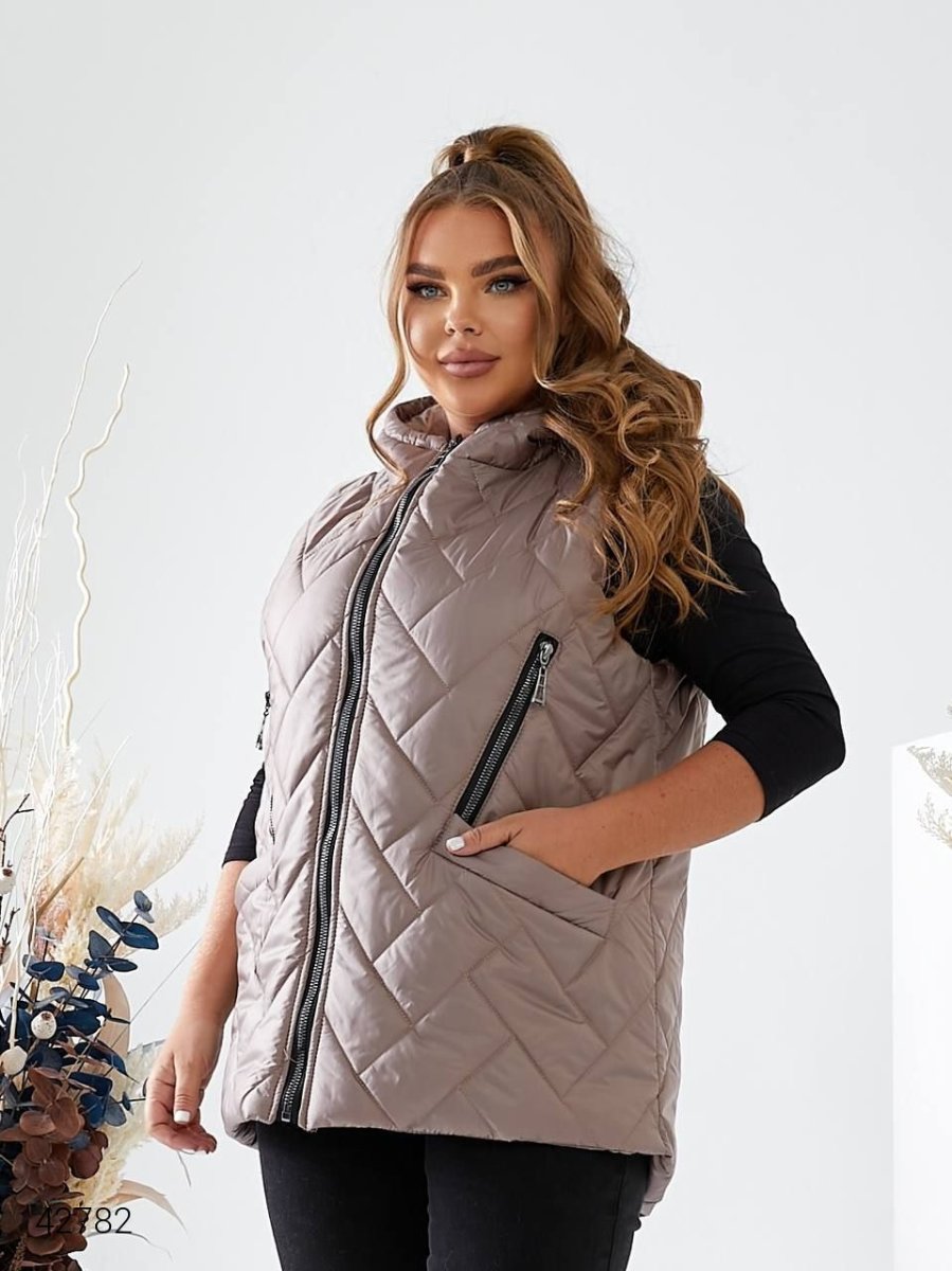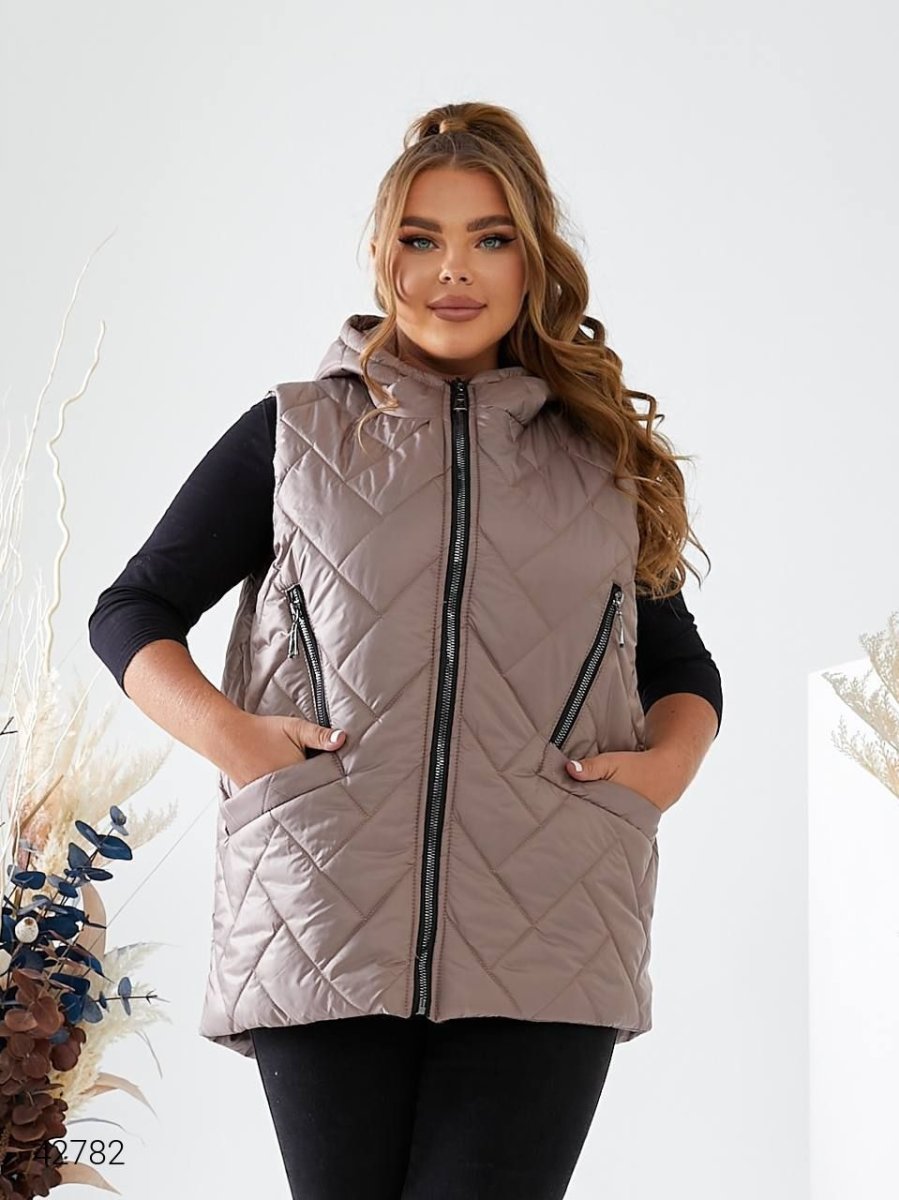 Стьобана жилетка жіноча. Стильна стьобана жилетка з кишенями, зручним глибоким капюшоном та якісною фурнітурою.
