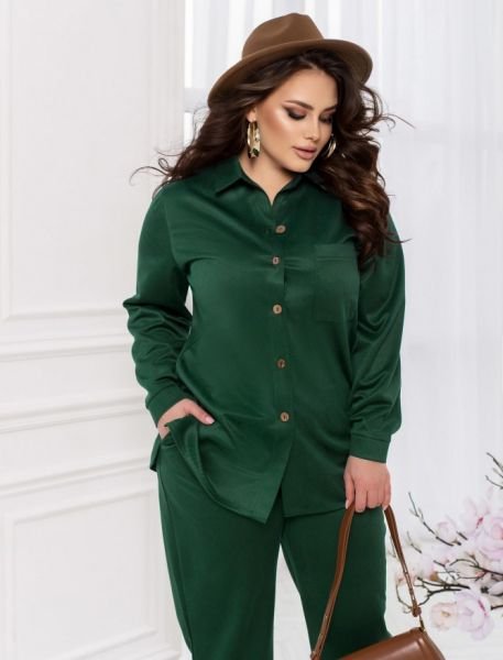 Стильний монохромний костюм з сорочкою і брюками допоможе вам виглядати елегантно і невимушено. Лаконічні штани звуженого крою на резинці з кишенями ідеально доповнені сорочкою з довгими рукавами з манжетами, яка застібається на ґудзиках спереду. Доповніть комплект футболкою або блузою для створення актуального образу для теплих осінніх або весняних днів.