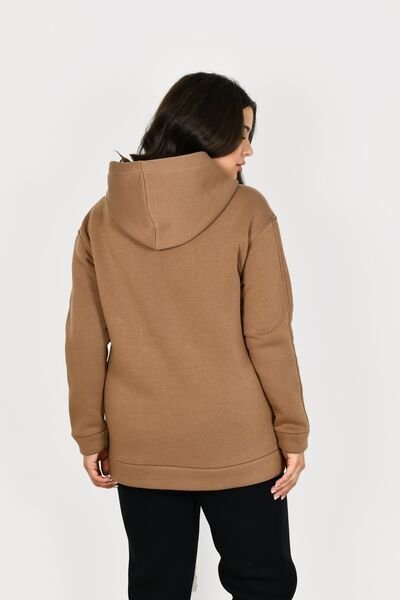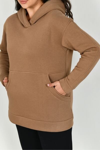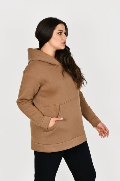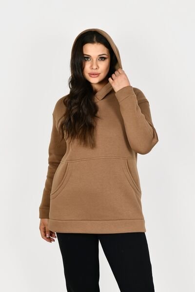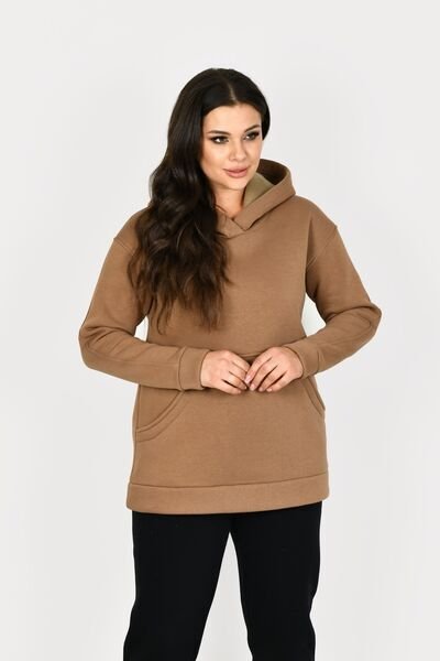 Стильний спортивний комплект із трикотажного полотна тринитка на флісі (Туреччина). З лицьової сторони тканина м‘яка і гладка, з вивороту - щільний начіс. Ростяжність тканини нижче середньої. Рекомендація по догляду: прання - автомат, в ручному режимі при температурі не вище 30 градусів. Джемпер прямого силуету з капюшоном. Рукав втачний на спущеній проймі. Попереду у рельєфних швах, дві кишені із трикотажної тканини.