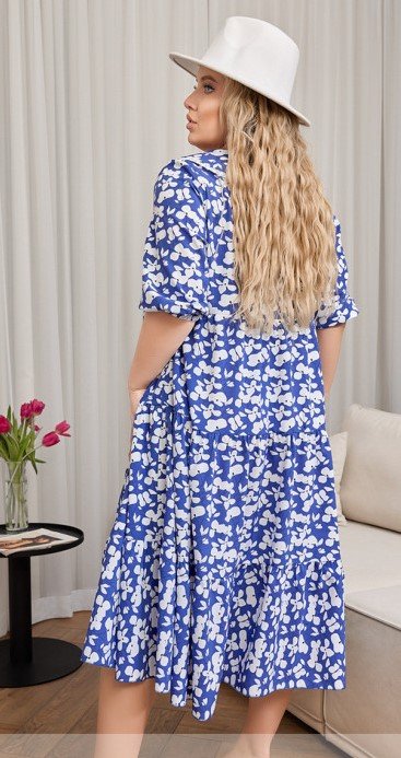 Елегантна сукня вільного крою, що вражає своєю жіночністю та вишуканістю. Трендовий комір, обшитий тонким мереживом, створює вишуканий акцент. Застібка на гудзики на грудях додає шарму та невимушеності. Нижня частина сукні з воланами та врізними кишенями в бічних швах створює ефектний образ. Рукава 3/4 із гумкою надають додаткової ніжності та стилю цій чарівній моделі.