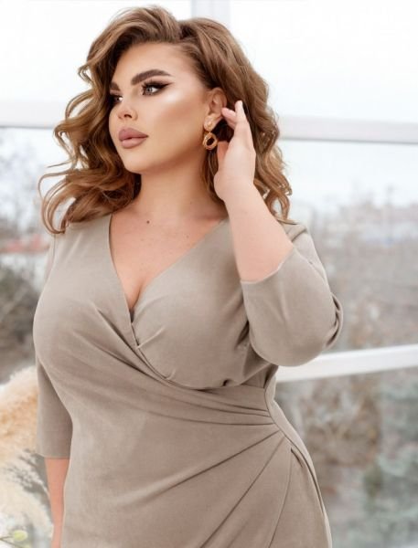 Витончена сукня по фігурі, що підкреслює апетитні вигини, з рукавами ¾ підшита на запАх з драпіруванням в зоні декольте і стегнах, що надає ще більше жіночності фігурі. На спині - прихована блискавка і розріз по лінії кроку. Дана модель допоможе створити лаконічний і жіночний образ.