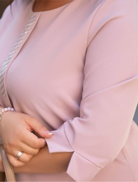 Елегантна і надзвичайно комфортна сукня вільного крою зробить вас вишуканою та чепурною. Горловина має півкруглий виріз від якої розсип зі страз, розташованими на декоративній планці. Практичні кишені вшиті у швах з обох боків сукні, а застібається вона на надійну блискавку, розташовану по спинці.