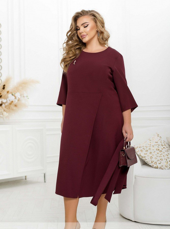 Елегантна і жіночна сукня міді, що створює цілісний і гармонійний жіночий образ, буде доречна як на прогулянці або зустрічі з друзями, так і на будь-якому вечірньому заході. Однотонна модель мінімалістичного крою з довгими рукавами довжиною 7/8 привертає увагу в першу чергу ефектним злегка асиметричним подолом, підшитим на запАх. Модель застібається на ледь помітну блискавку, вшиту в бічний шов.