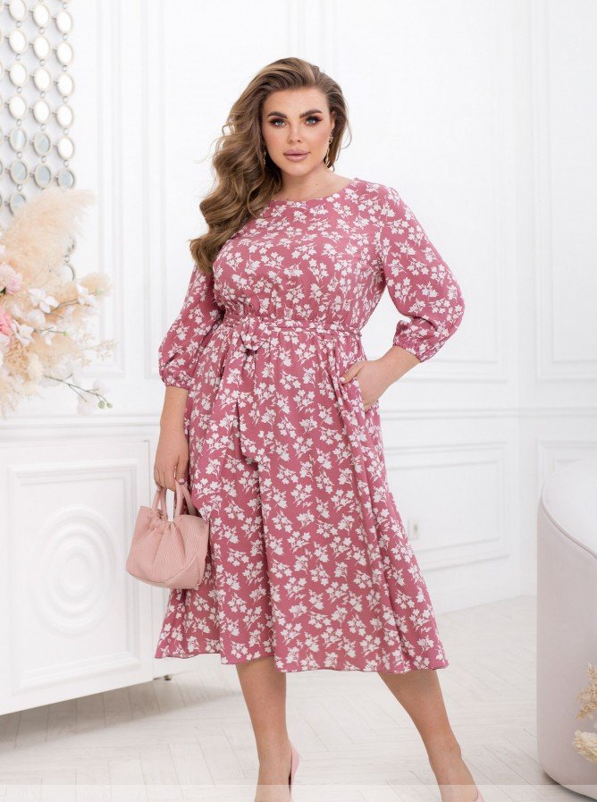 Ця чарівна жіночна сукня має вишуканий дизайн та елегантний крій, ідеально підходячи для різноманітних заходів. Довжина міді надає образу жіночності та стилю. Рукава 7/8 з гумкою забезпечують зручність під час руху. Відрізна талія створює чудовий акцент, особливо коли використовується текстильний пояс, який входить в комплект. Це надає можливість підкреслити та виділити талію, створюючи вишуканий силует. Вертикальні виточки додають фігурність та структуру сукні, підкреслюючи жіночні лінії. Горловина з тонкою каймою завершує стиль сукні, надаючи образу завершеності та дбайливого дотику.