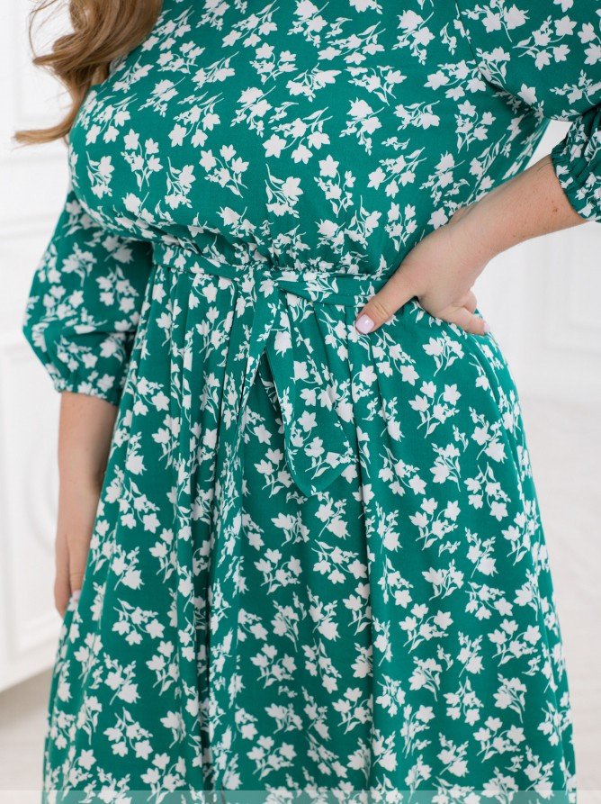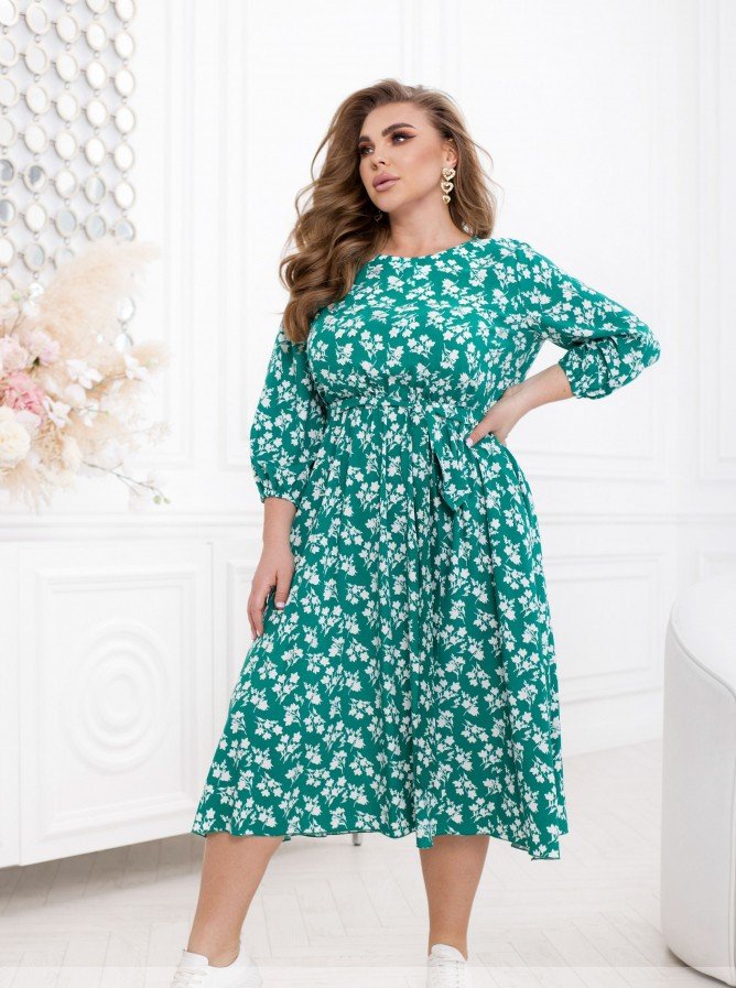 Ця чарівна жіночна сукня має вишуканий дизайн та елегантний крій, ідеально підходячи для різноманітних заходів. Довжина міді надає образу жіночності та стилю. Рукава 7/8 з гумкою забезпечують зручність під час руху. Відрізна талія створює чудовий акцент, особливо коли використовується текстильний пояс, який входить в комплект. Це надає можливість підкреслити та виділити талію, створюючи вишуканий силует. Вертикальні виточки додають фігурність та структуру сукні, підкреслюючи жіночні лінії. Горловина з тонкою каймою завершує стиль сукні, надаючи образу завершеності та дбайливого дотику.