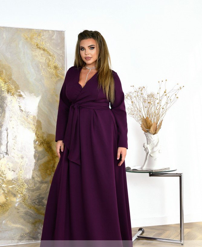 Представляємо вашій увазі розкішну жіночу сукню максі на запах, яка створена для вас, щоб ви виглядали елегантно та відчували себе вишукано. Ця сукня має чарівний V-виріз, який додає жіночості та грації образу. Вона застібається за допомогою пришивного поясу, що проходить через елегантний отвір збоку, створюючи ідеальну посадку та підкреслюючи вашу фігуру. Довгі рукава додають сукні ефірності та ніжності. Ця сукня — ідеально підходить для святкових подій або важливих урочистостей. Ви будете справжньою королевою у цій сукні. Її дизайн та стиль зроблять вас незабутньою на будь-якому заході.