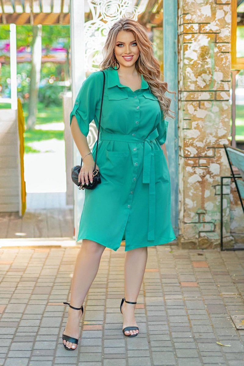 Пряма сукня у стилі сафарі на гудзиках з сорочковим коміром. По переду сукні накладні кишені. Рукав до ліктя з патами, що регулюють його довжину. Ремінець продається окремо 75 грн.