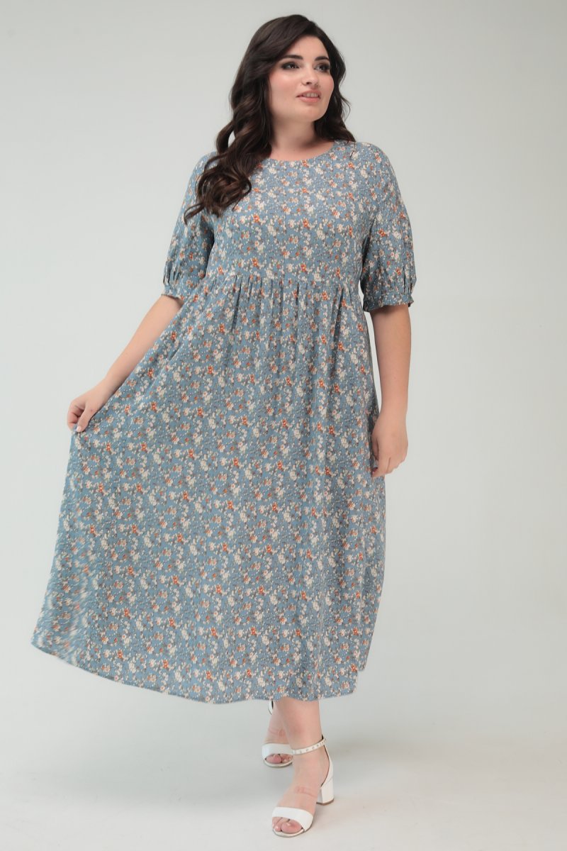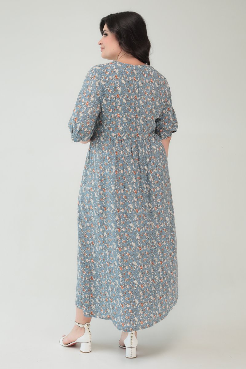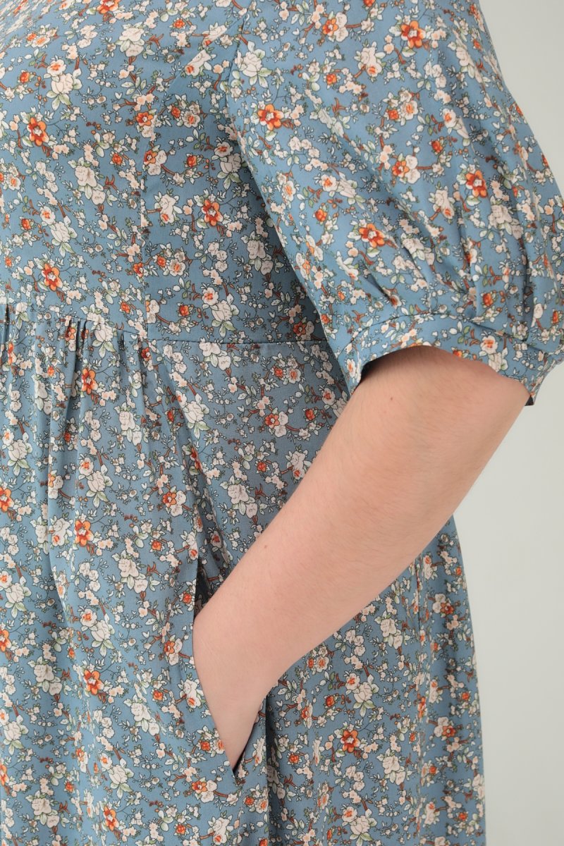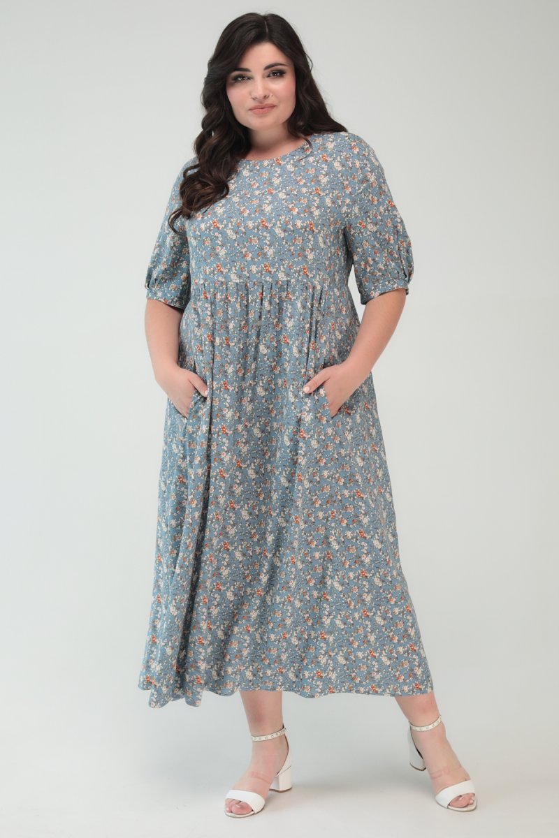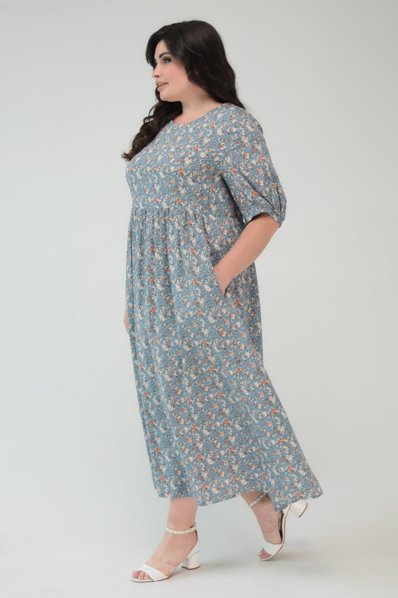 Сукня стане знахідкою для літніх образів. Перед сукні з відрізним ліфом. Акуратне складання виконано по лінії притачування нижньої частини. У рельєфних швах полиці – кишені. Виріз горловини округлої форми. Рукав втачний, на манжеті зі складами по низу. Тканина легка і тактильно приємна, але також має підвищену міцність і практичність, що відмінно підходить літнім моделям для повсякденного використання.