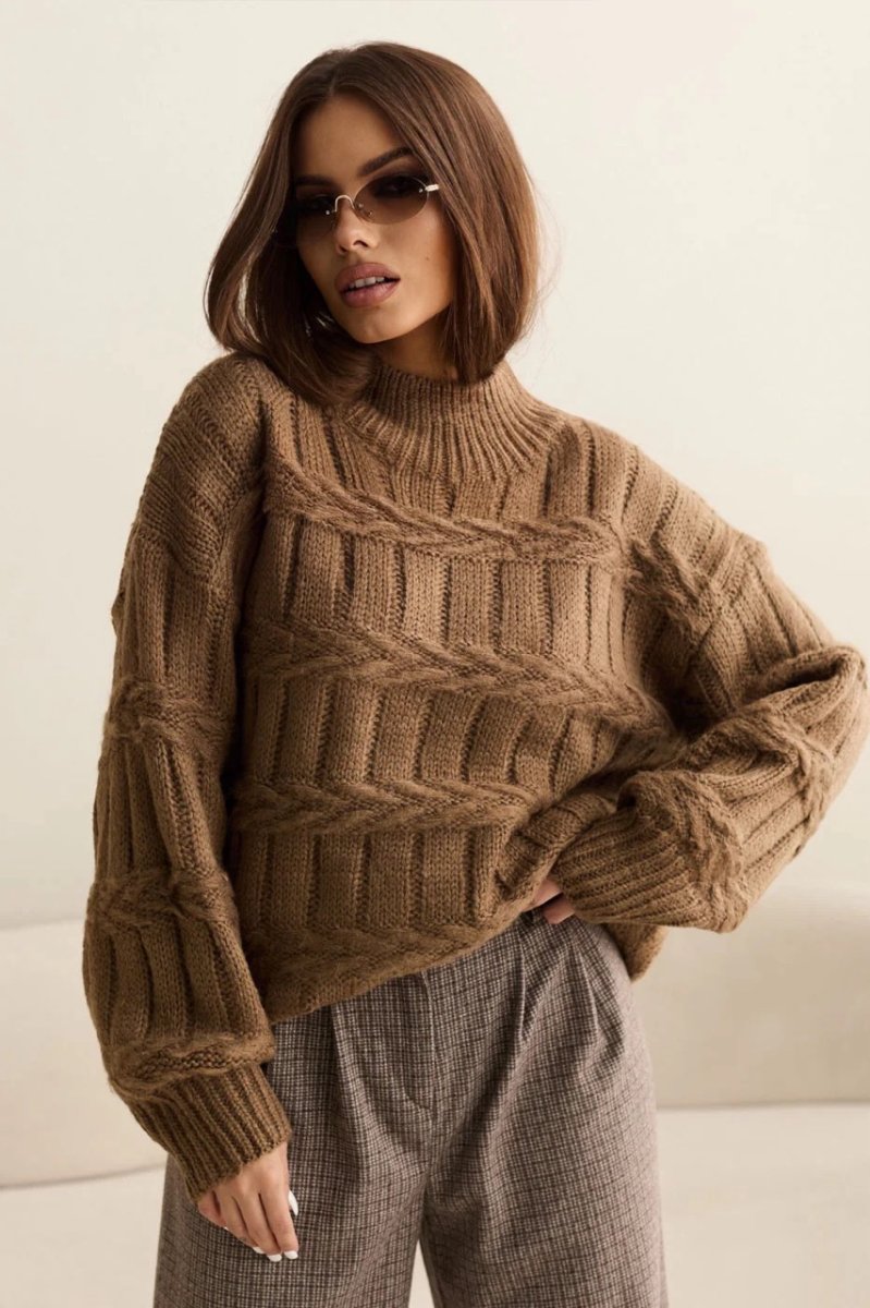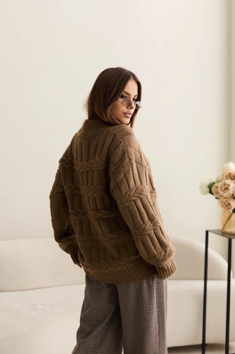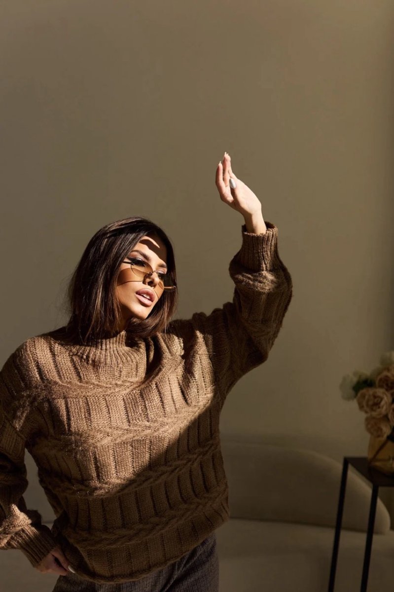 Теплий вільний светр чудово підійде на холодний період. Рукав вільний, довгий. Комірець стійка. Светр виконаний із щільної високоякісної в'язки.