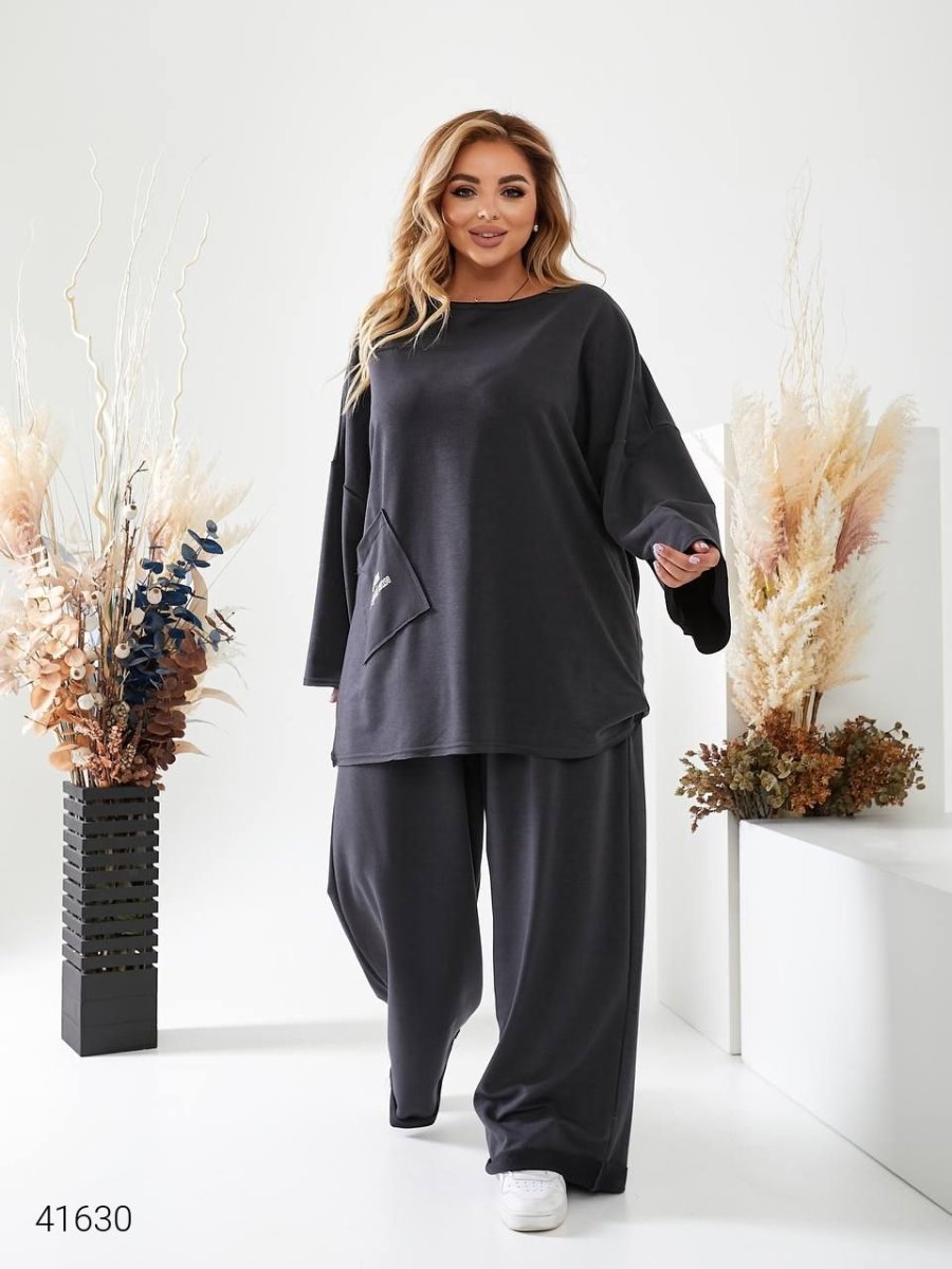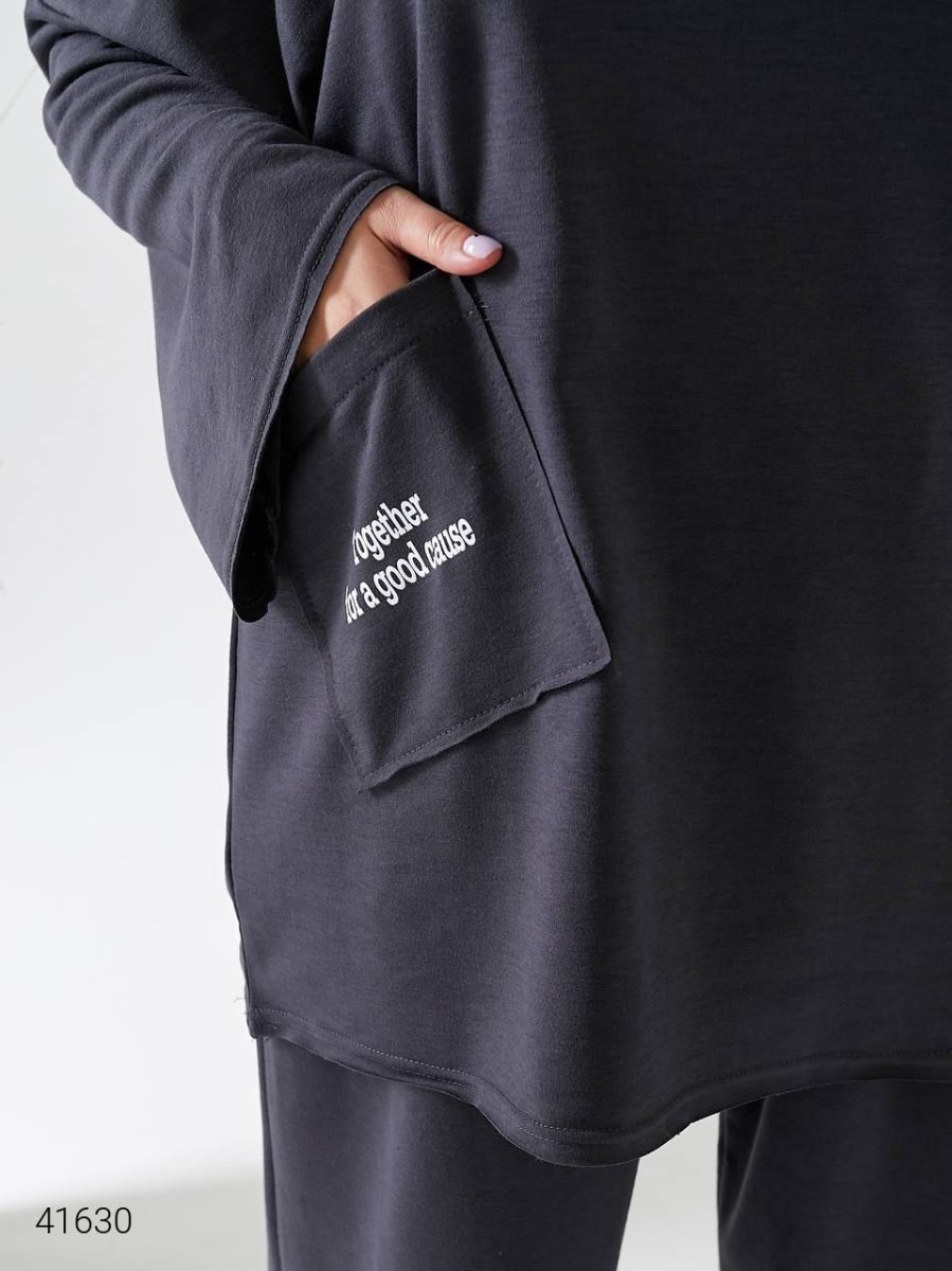 Вільний жіночий костюм великих розмірів 41630 темно-сірий
