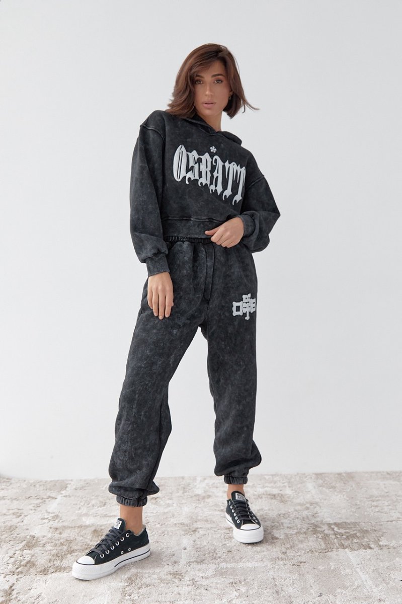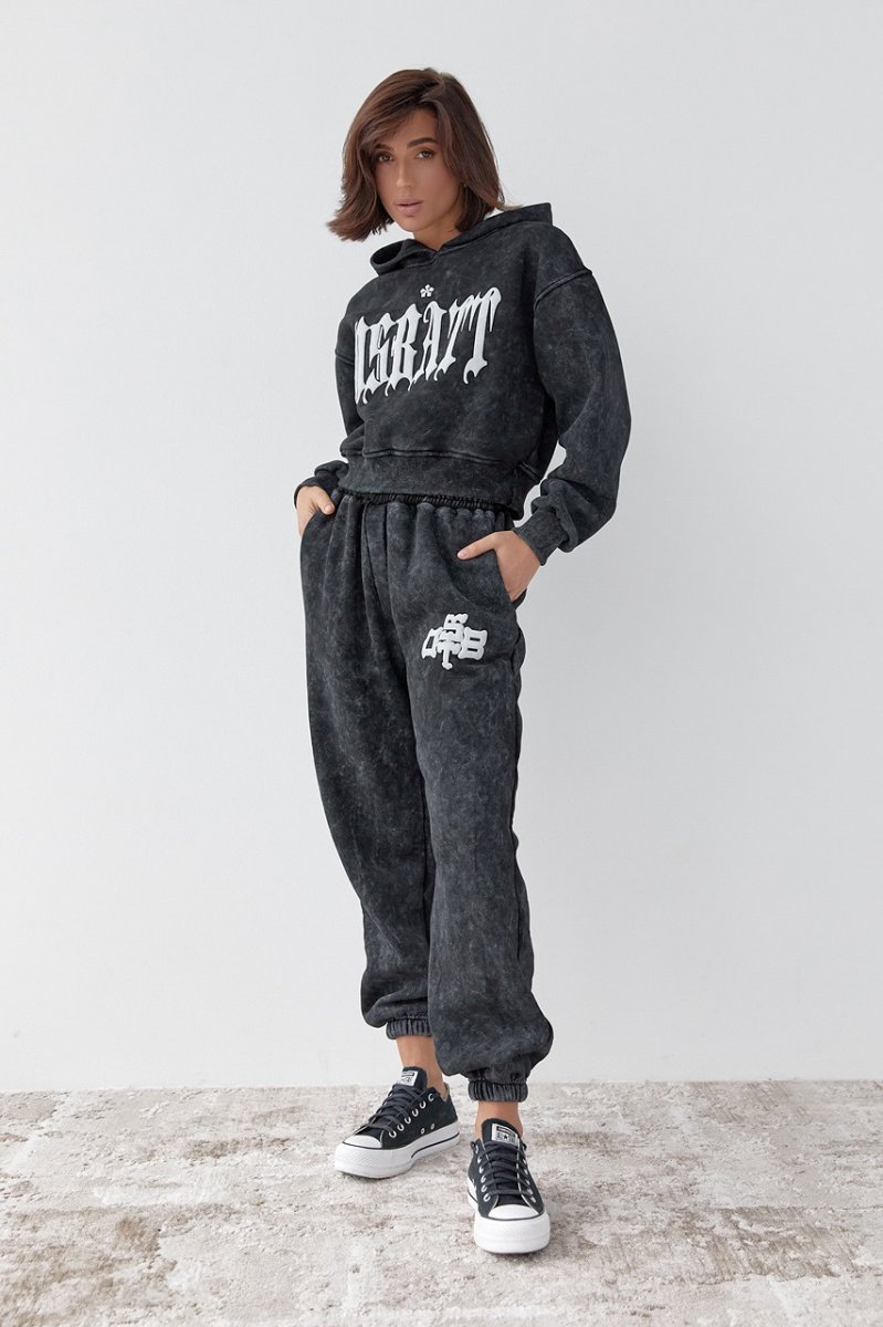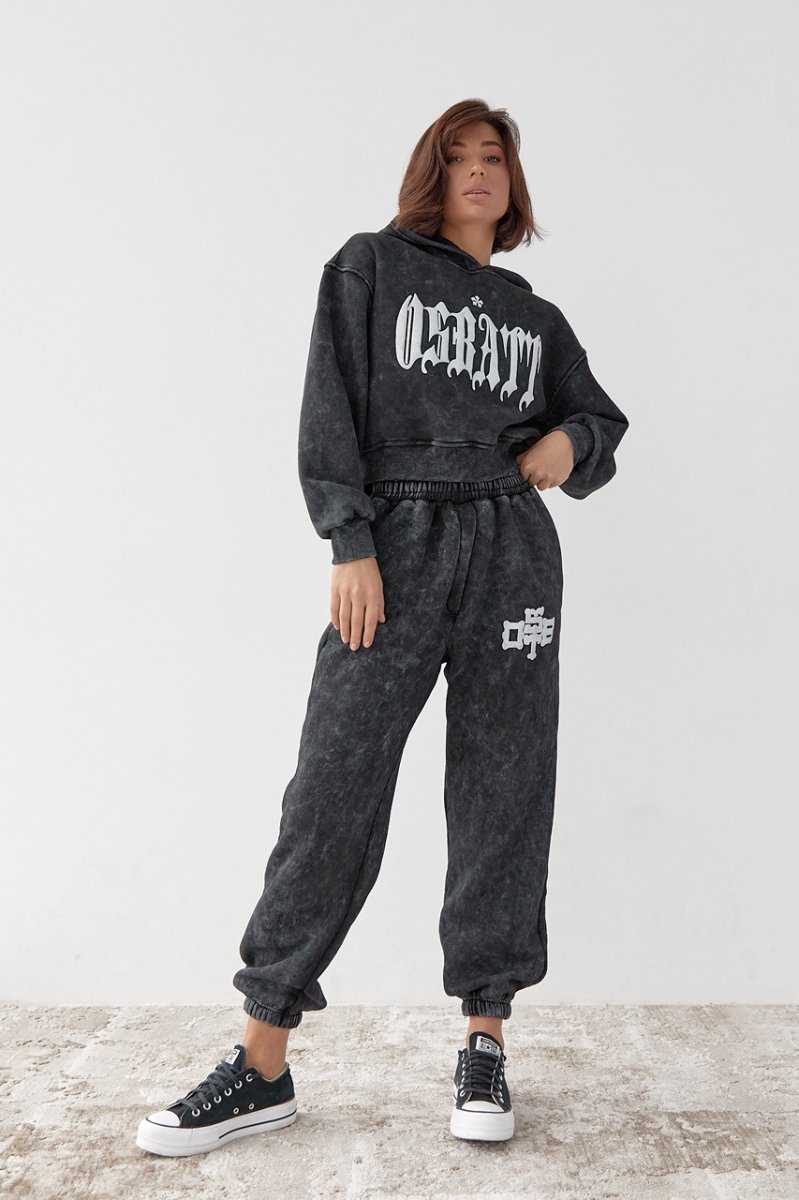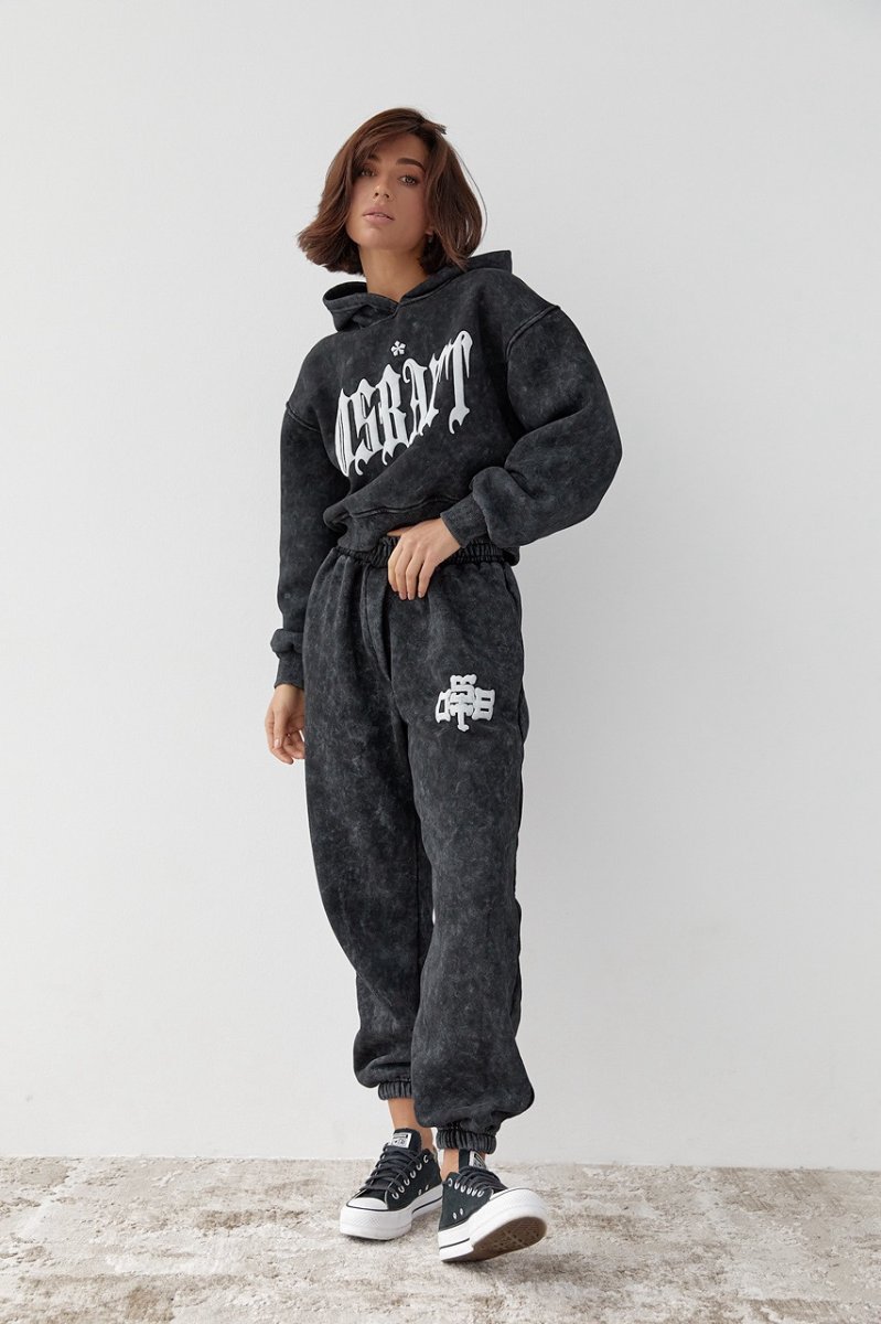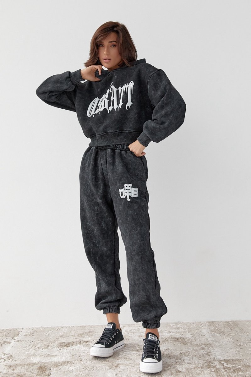 Теплий спортивний костюм жіночий з принтом Osbatt - темно-сірий