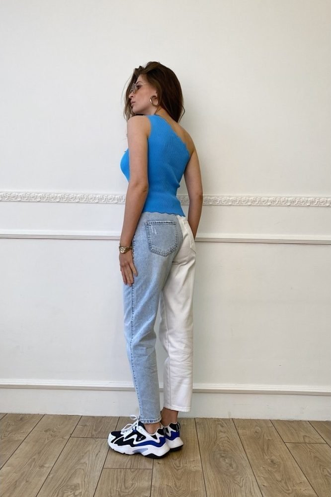 Легкий асиметричний топ прикрашений хвилястим краєм. Топ на одне плече виглядає ефектно, додає яскравий акцент образу. Вироблено в Туреччині.
