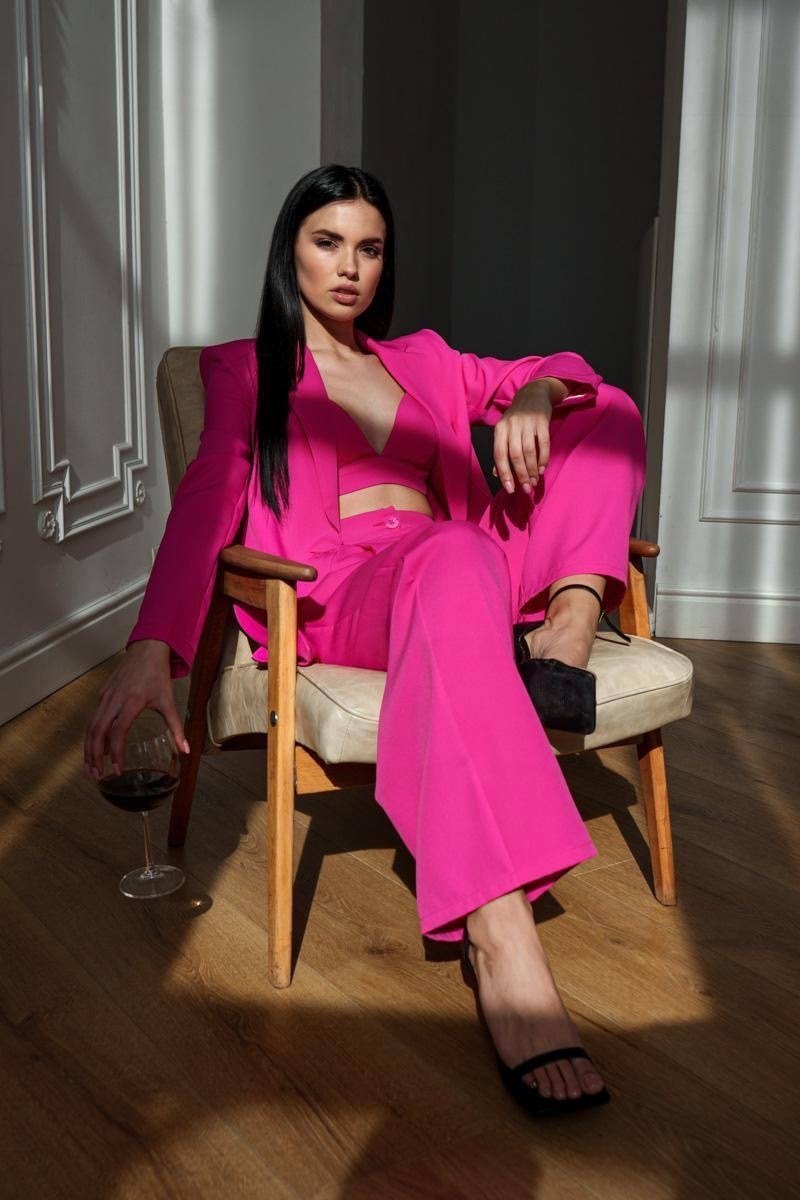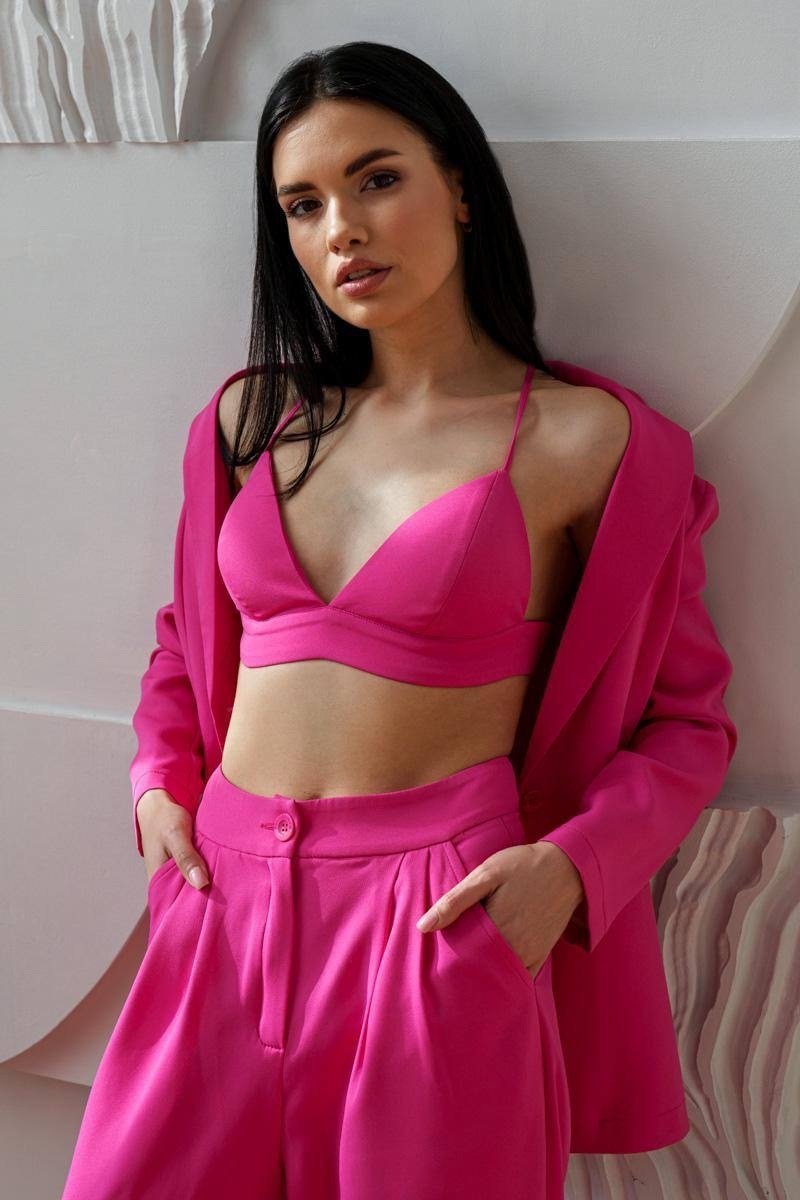 Вставні чашки підкреслюють об'єм грудей. Модель застібається по центру спини на стильні гудзики