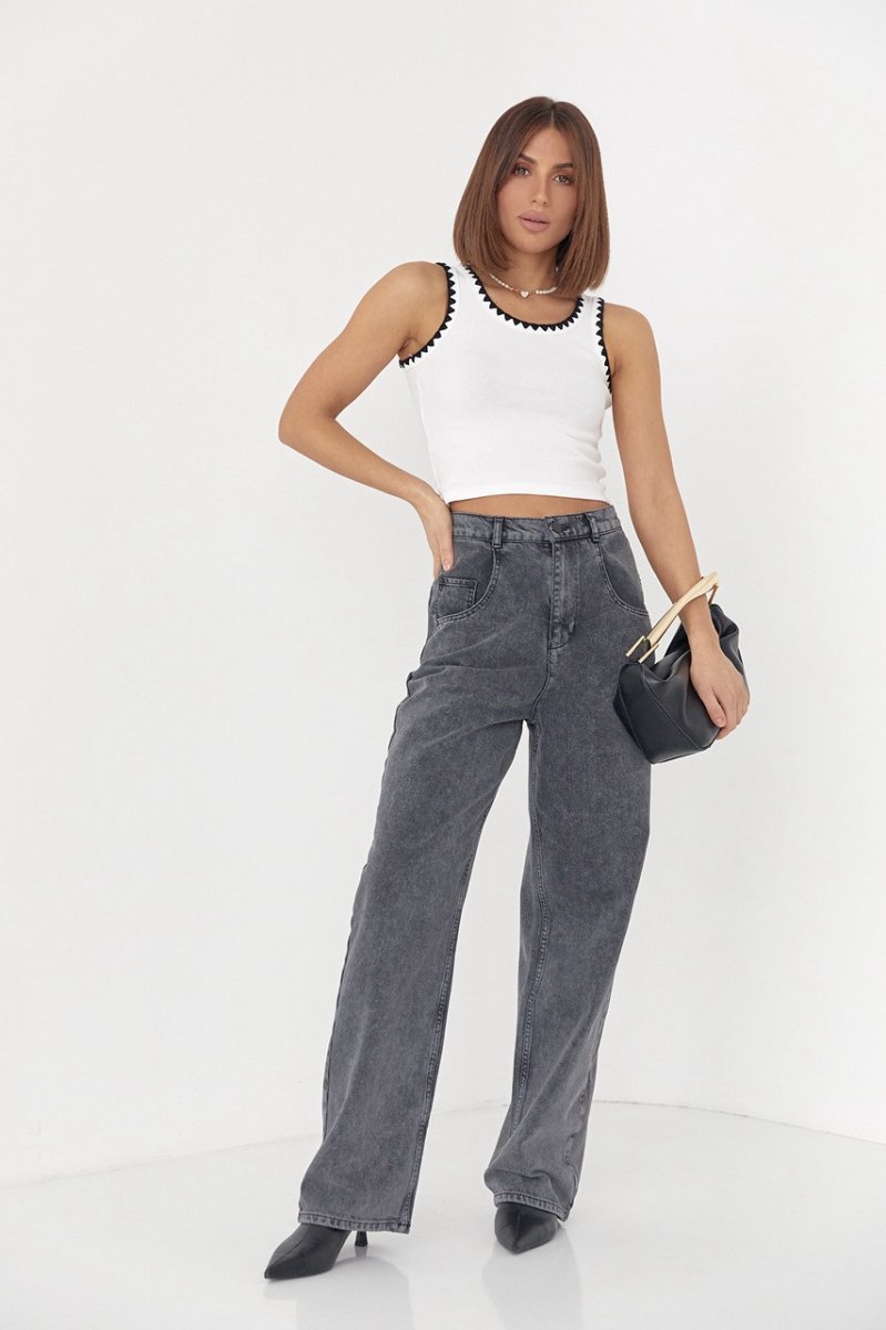 Ще одна новинка для вашого базового гардеробу — майка з бавовняного трикотажу в дрібний рубчик. Ця лаконічна модель укороченої довжини гарно поєднується з костюмами та брюками та стане ідеальною базою під кардигани та светри, коли хочеться утеплитися.