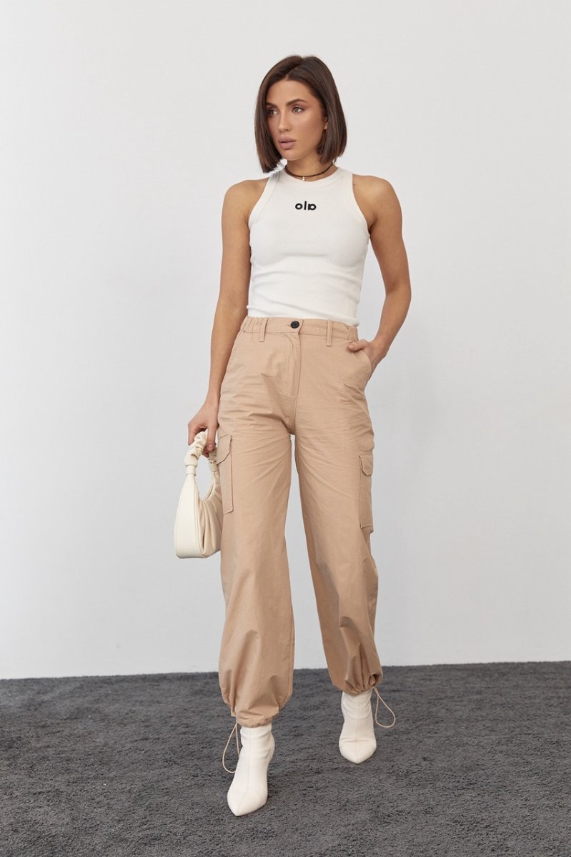 Ще одна новинка для вашого базового гардеробу — майка з бавовняного трикотажу в дрібний рубчик. Ця лаконічна модель гарно поєднується з костюмами та брюками.