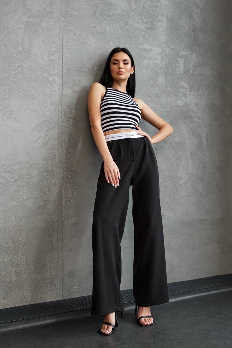 Укорочена майка силуету, що облягає, - ідеальний вибір для створення сучасного і стильного образу. Виконана з м'якого трикотажу, який приємний на дотик та забезпечує комфортну посадку. Ця майка відмінно підходить для поєднання з джинсами або спідницею та стане незамінною річчю у гардеробі кожної модниці. Виміри в нерозтягнутому стані