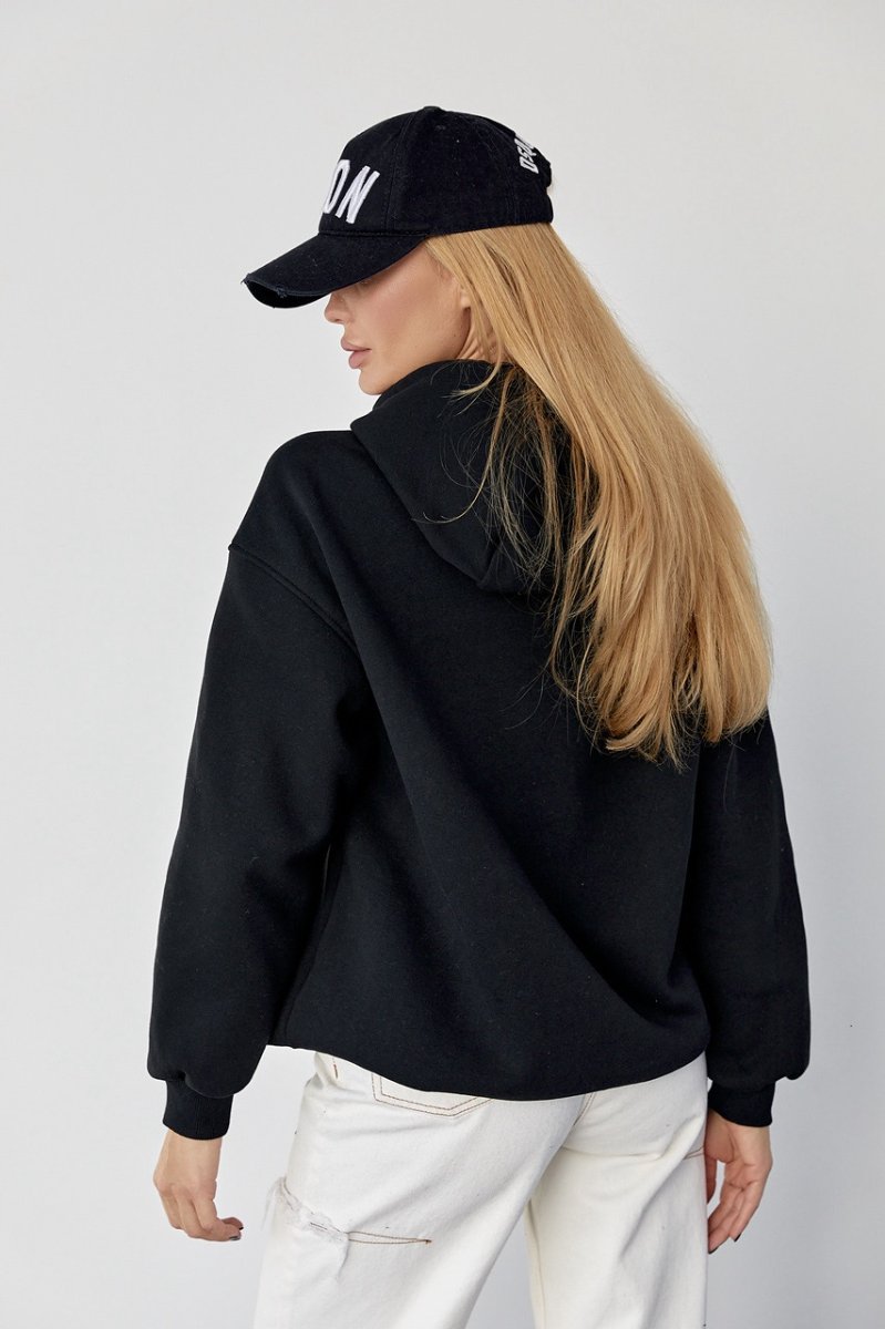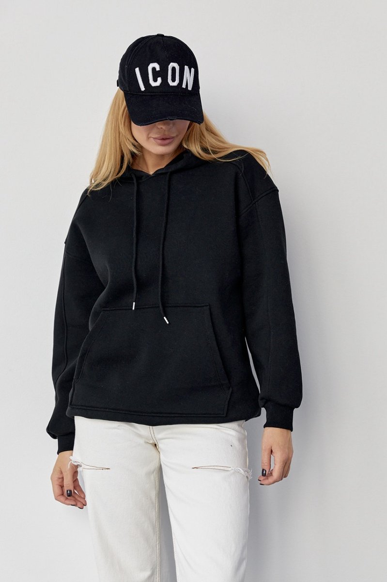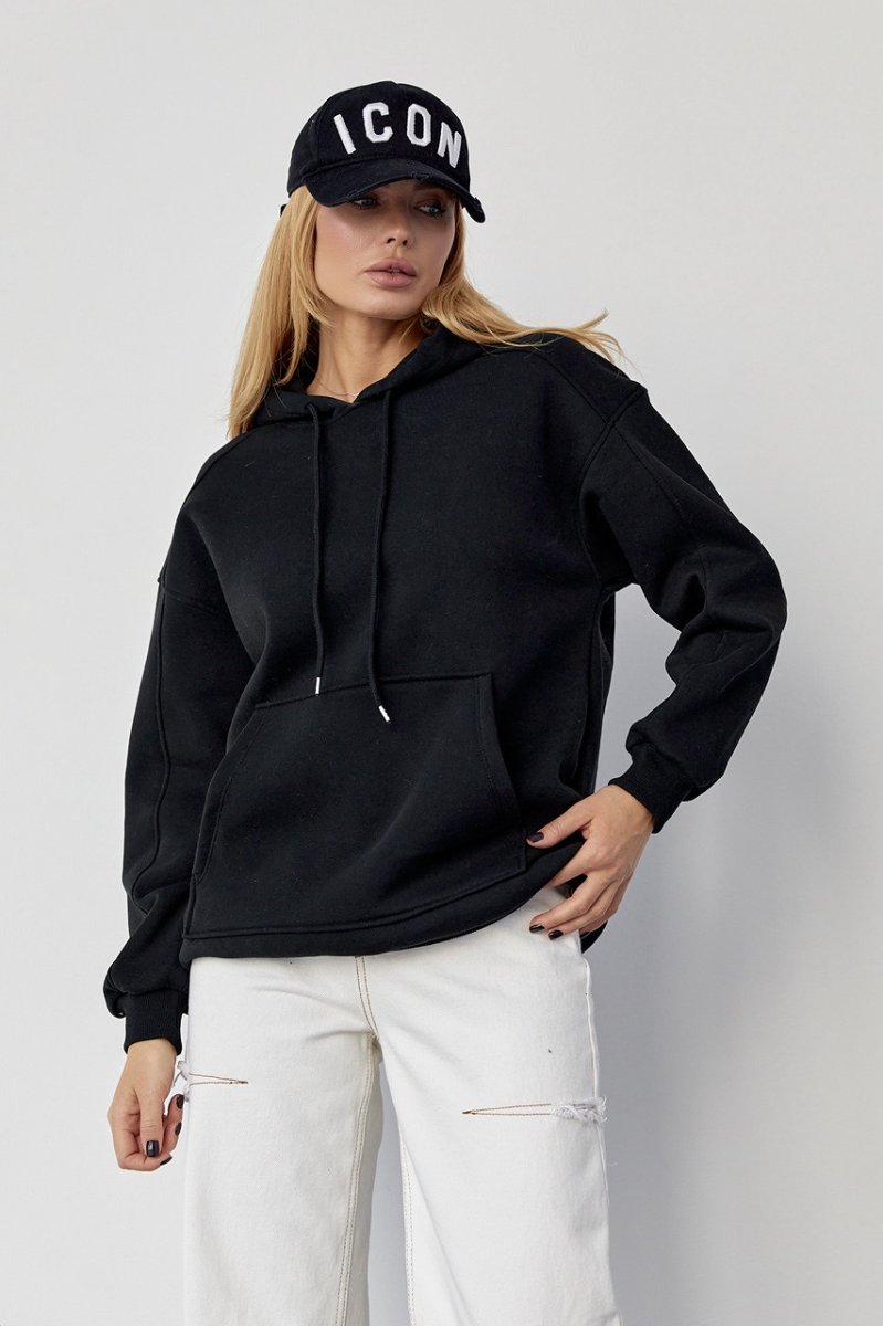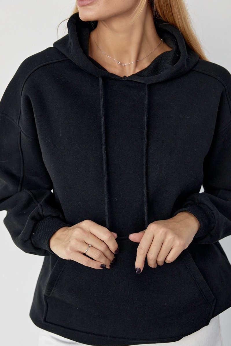 Утеплене жіноче худі з кишенею-кенгуру 8606 чорний