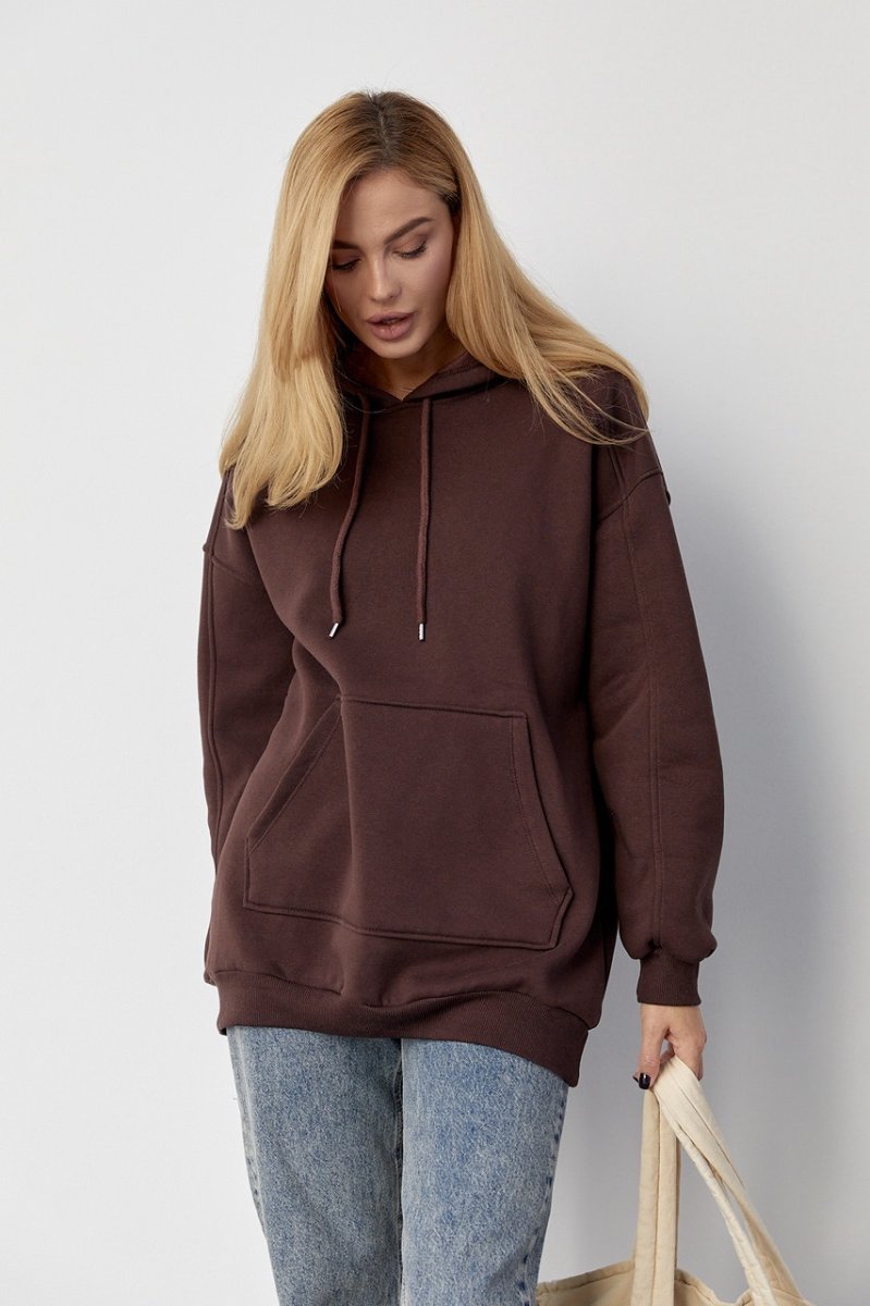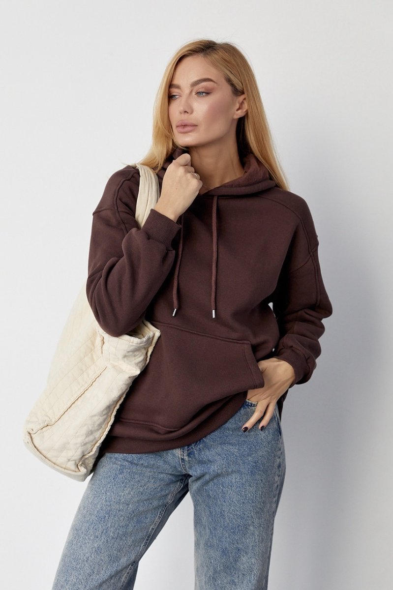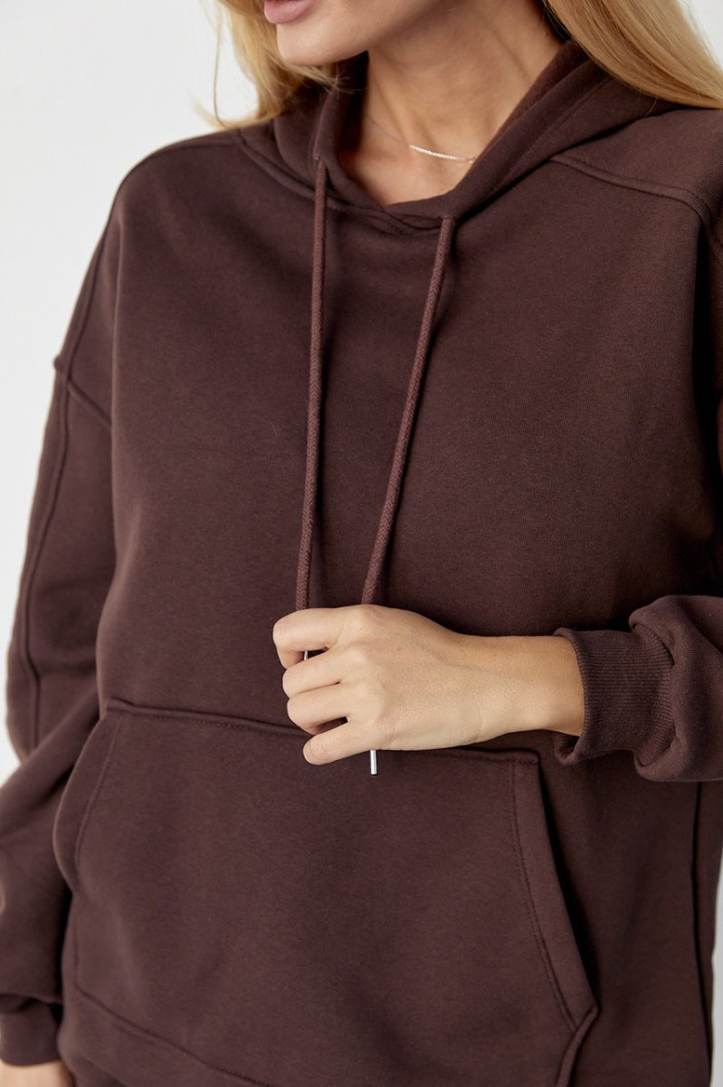 Утеплене жіноче худі з кишенею-кенгуру 8606 коричневий