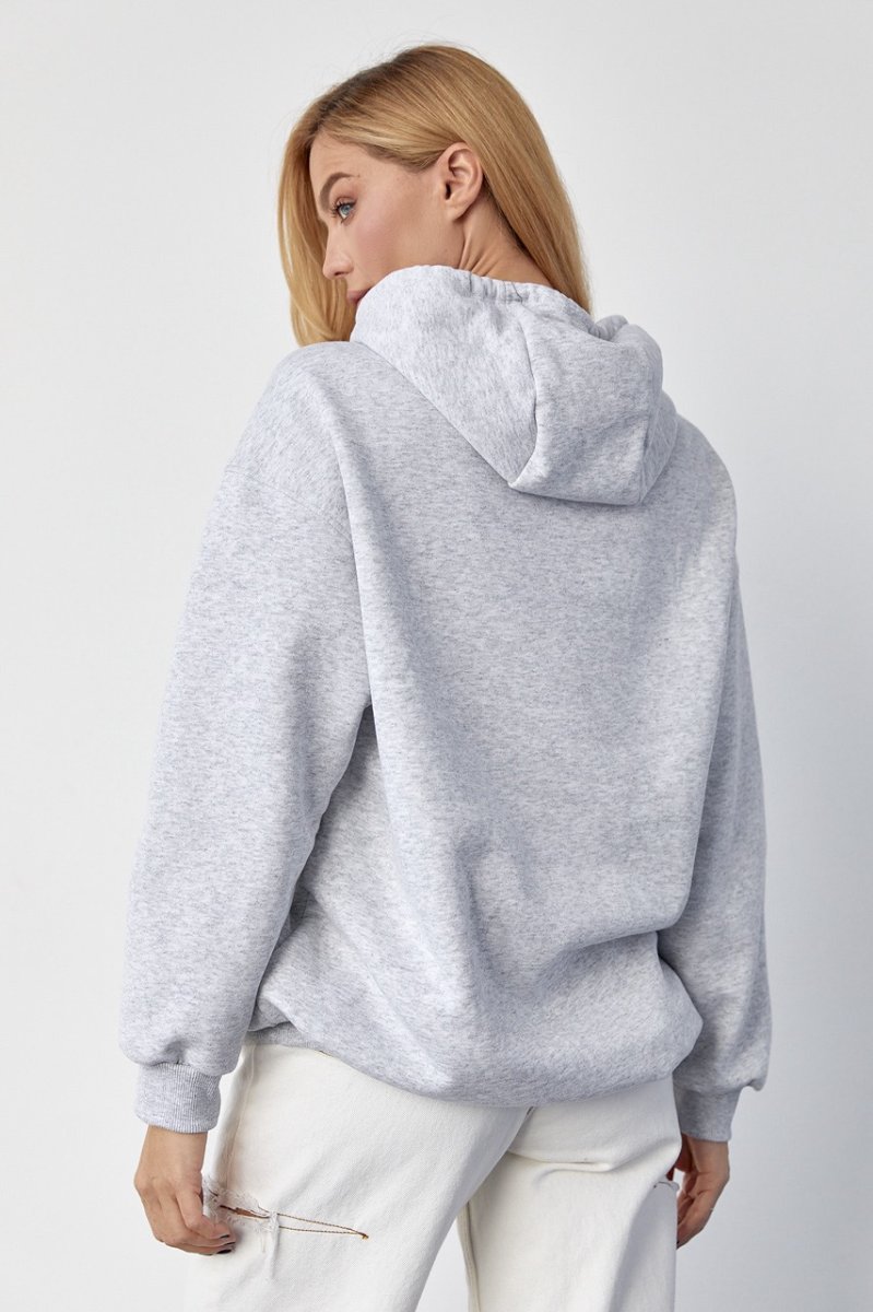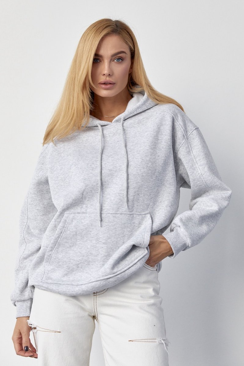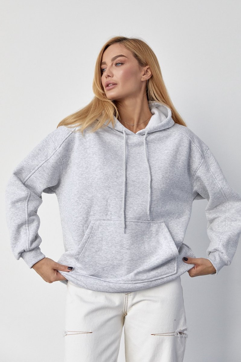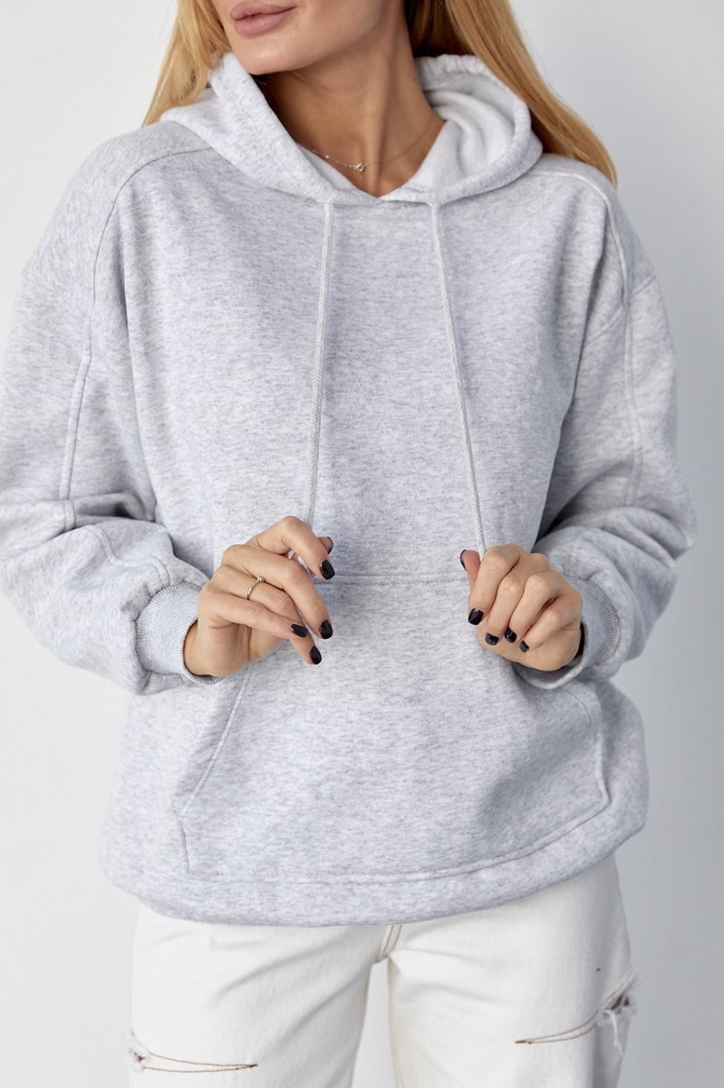 Утеплене жіноче худі з кишенею-кенгуру 8606 світло-сірий