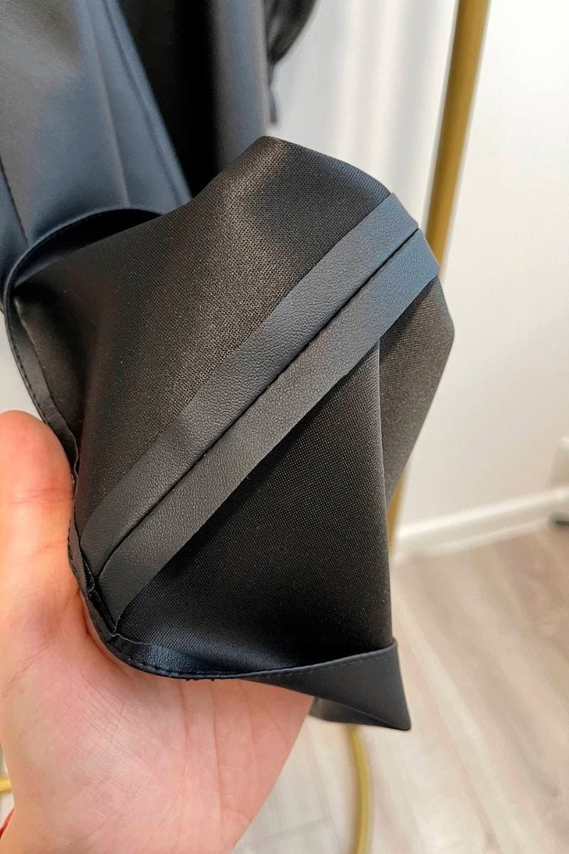 Сукня з еко-шкіри на бретелях зі знімними рукавами довжини міні. Рукава виконані на гумці, відстібаються. Сукня в корсетному стилі з чашками і горизонтальними вставками по поличці і на спинці. Родзинкою моделі є ланцюг, розташована на поясі. Бретелі знімні, регулюються. Застібається на потаємну блискавку на спинці.