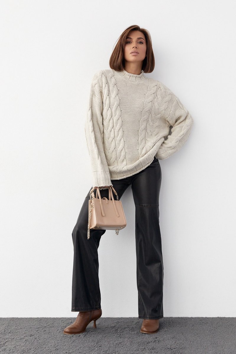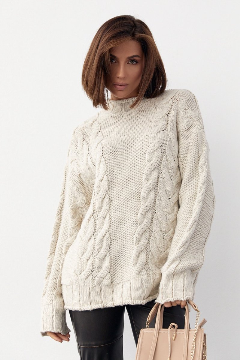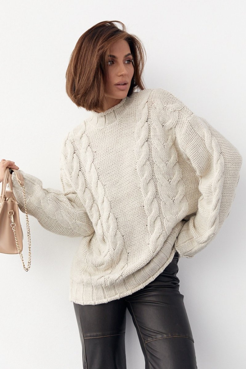 Супер теплий жіночий светр oversize із крупної в'язки і прикрашений косами стане твоєю улюбленою базою в холодний сезон! Носи його зі стильними штанами, джинсами чи лосинами та насолоджуйся результатом.