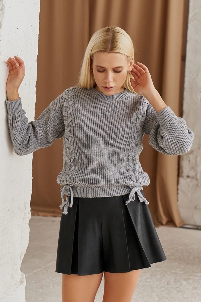 Теплий светр зі стрічкою у вигляді косички спереду вироби. Манжети на рукаві, комір і низ виробу доповнені гумкою. Светр незамінний в період зимових морозів або в прохолоду міжсезоння, а також підійде будь – якій дівчині-незалежно від віку, фігури, зростання або кольоротипу. Вироблено в Туреччині.