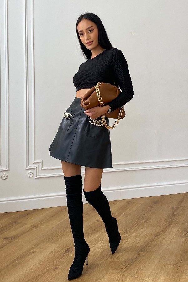 Шкіряна коротка спідниця - це своєрідний виклик суспільству, тому що залишитися непоміченою в ній просто неможливо! Ми пропонуємо Вашій увазі нашу нову модель спідниця» Венеціано " ця моделька виконана з еко шкіри на флісі тому відмінно підійде для осінньої і зимової пори. На кишенях присутні Декоративні ланки, які надають образу грайливості та оригінальності.