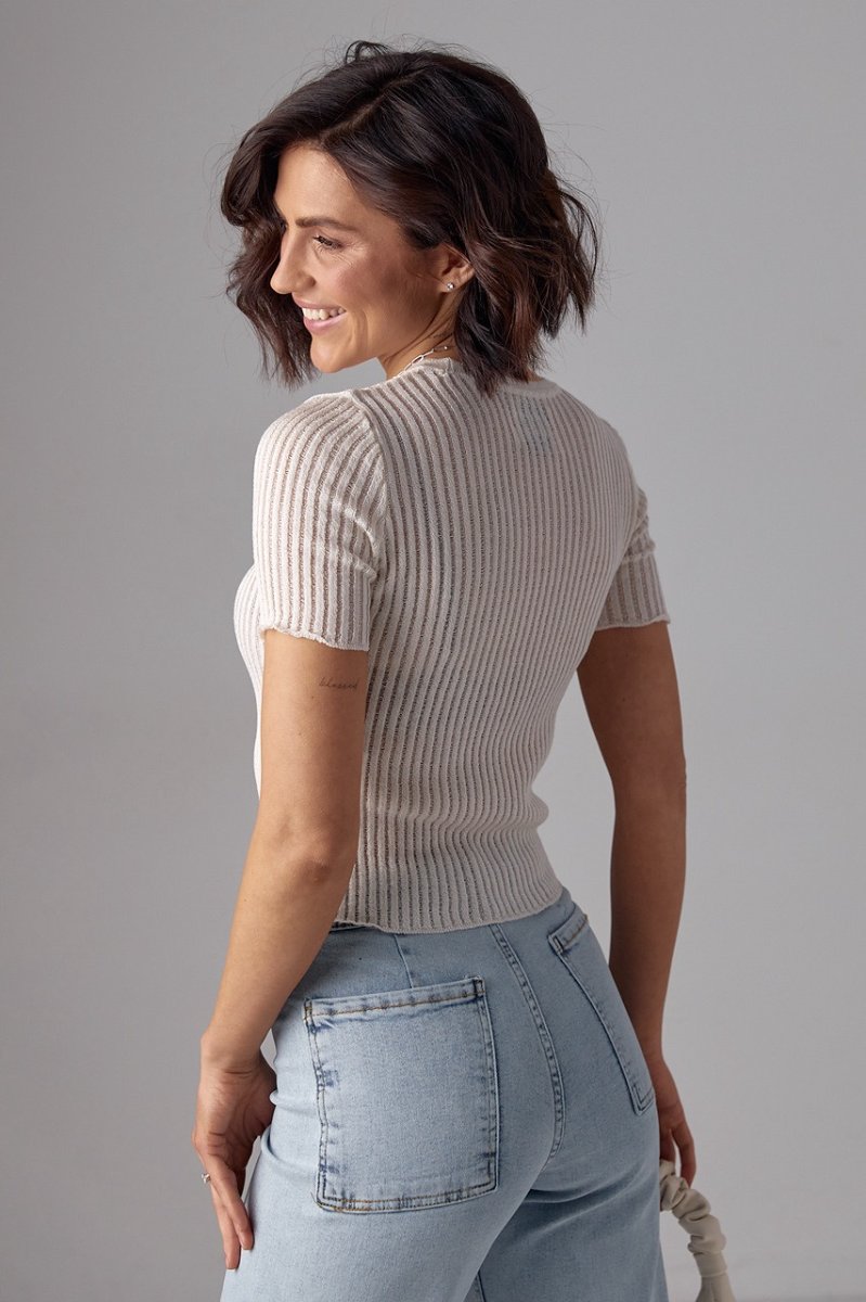 З модною футболкою із ажурної машинної в'язки ти додасиш трендових акцентів своїм літнім образам і будеш готова до спекотної погоди.